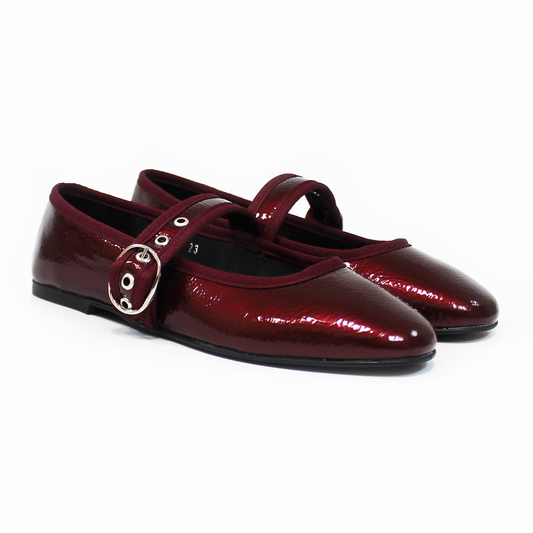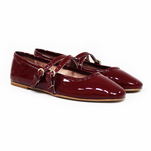 Flat Ballerina Clásica Vino Charol con Pulseras Cruzadas en empeine de Dama TACZA