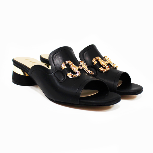 Mule de Tacón Negro con Detalle de Herraje y Tacón Redondo TACZA