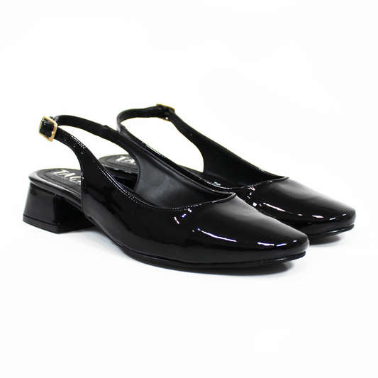 Zapatilla Slingback Destalonada Negro Charol TACZA de Dama