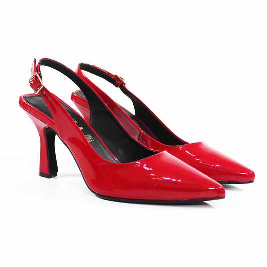 Zapatilla Slingback Puntal con tacón campana Destalonada Rojo Charol de Dama TACZA