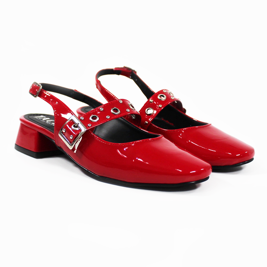 Zapatilla Slingback Destalonada con Estoperoles Rojo Charol TACZA de Dama