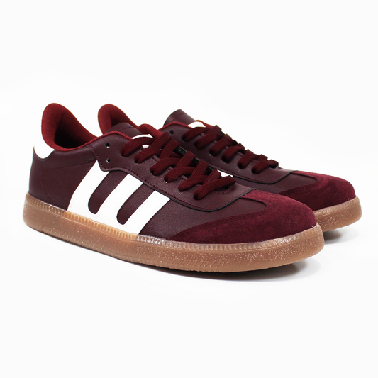 Tenis Sneaker tipo Samba Vino Burgundy con Blanco de Dama TACZA