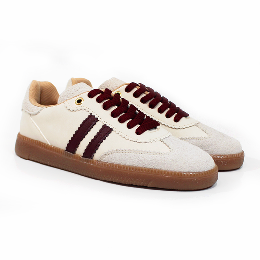 Tenis Sneaker Beige con Vino dupe Samba de Dama TACZA