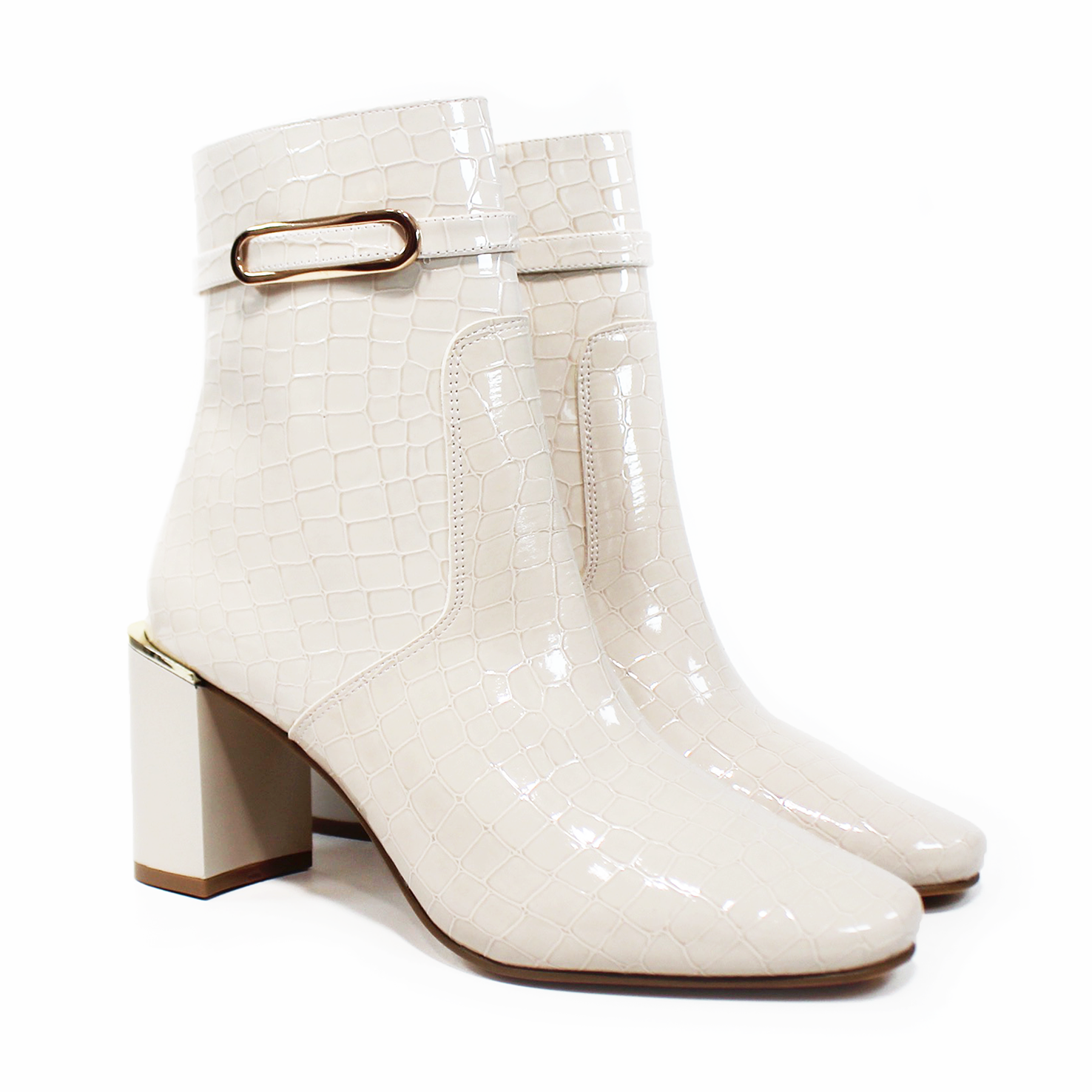 Botín de Vestir Late Croco con Hebilla Ovalada y Detalle Dorado en Tacón TACZA