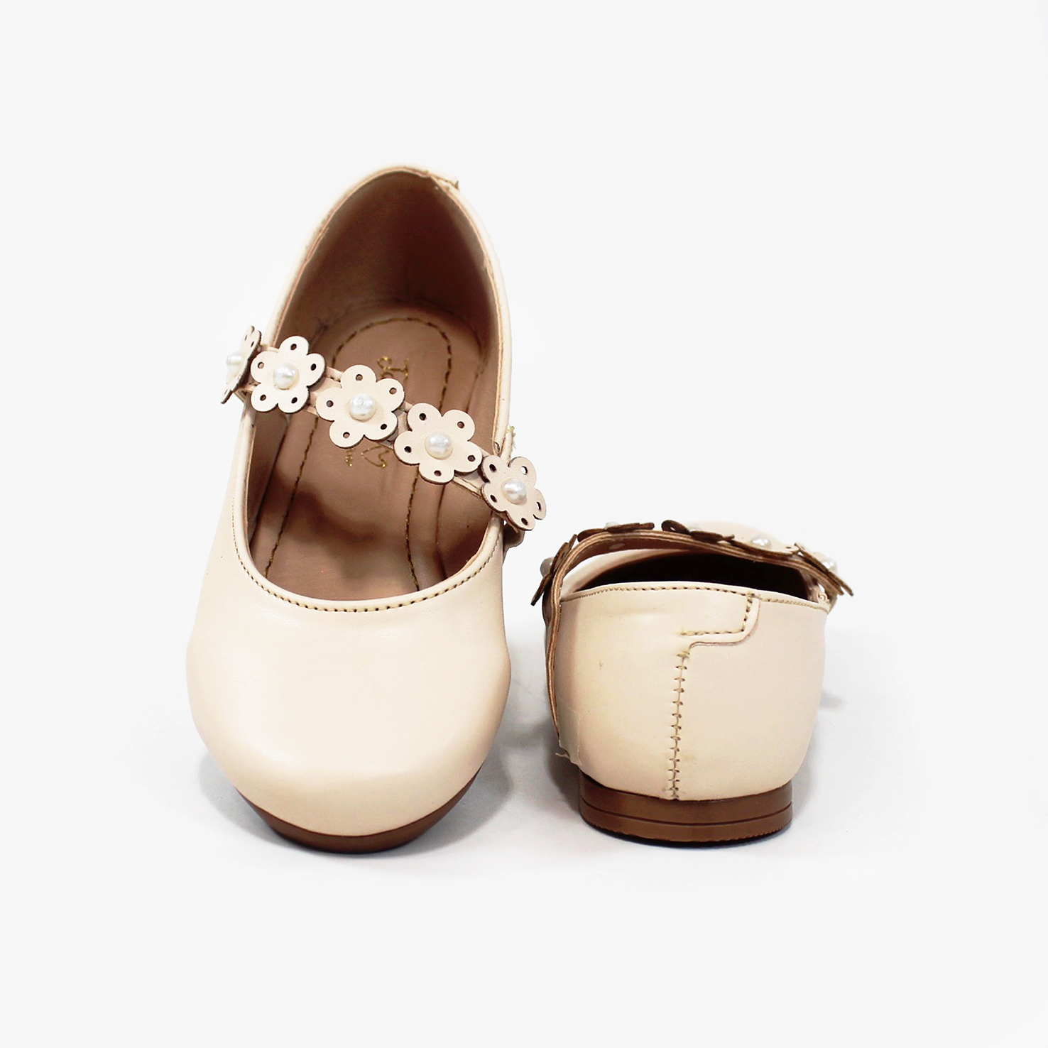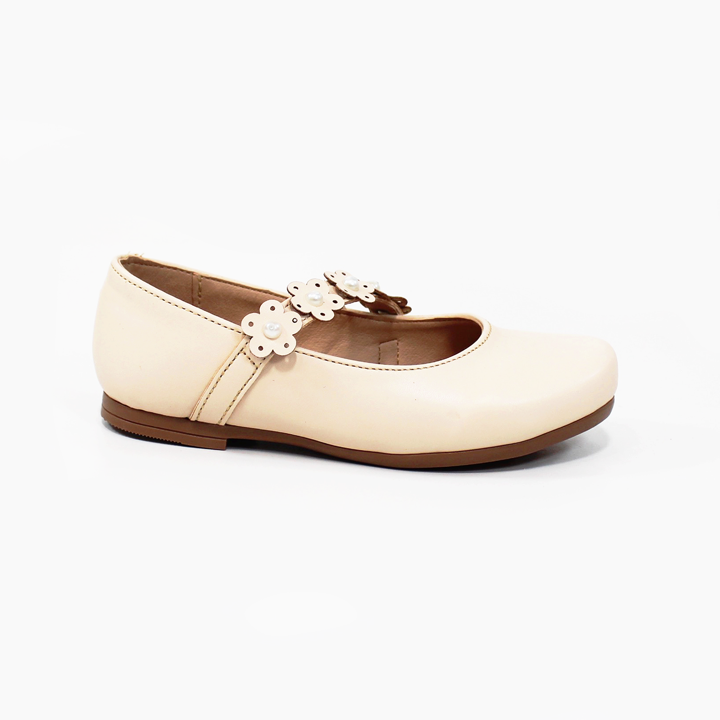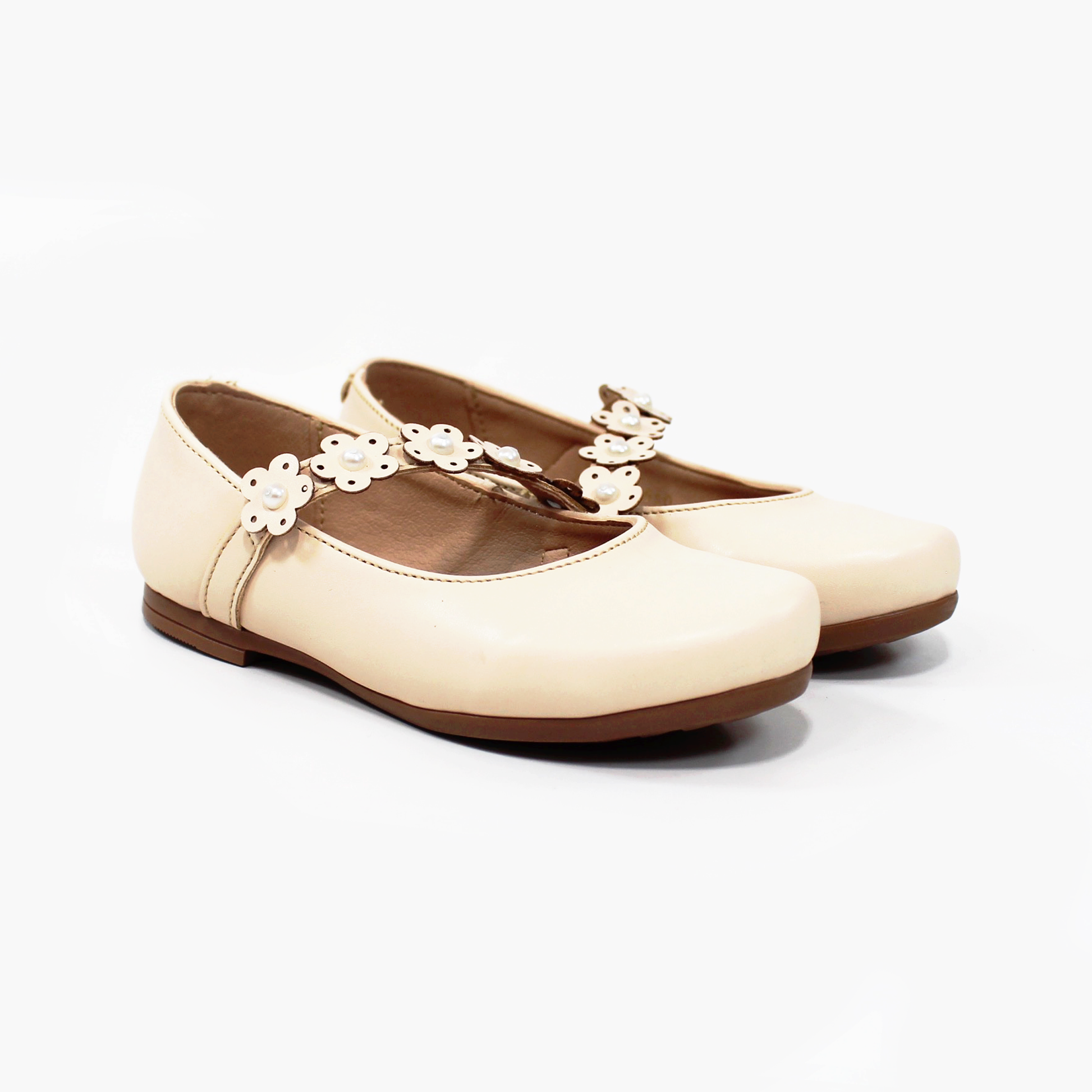 Balerina de Niña Crema con Tira de Flores en Empeine JAKUNA