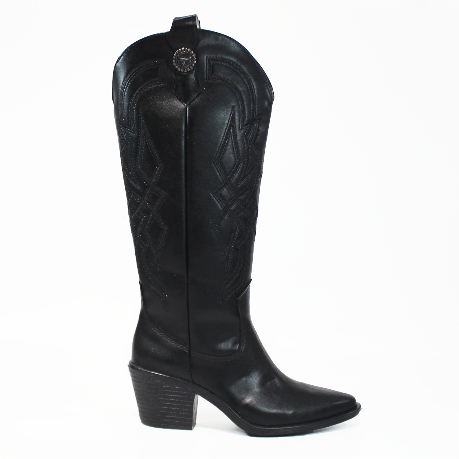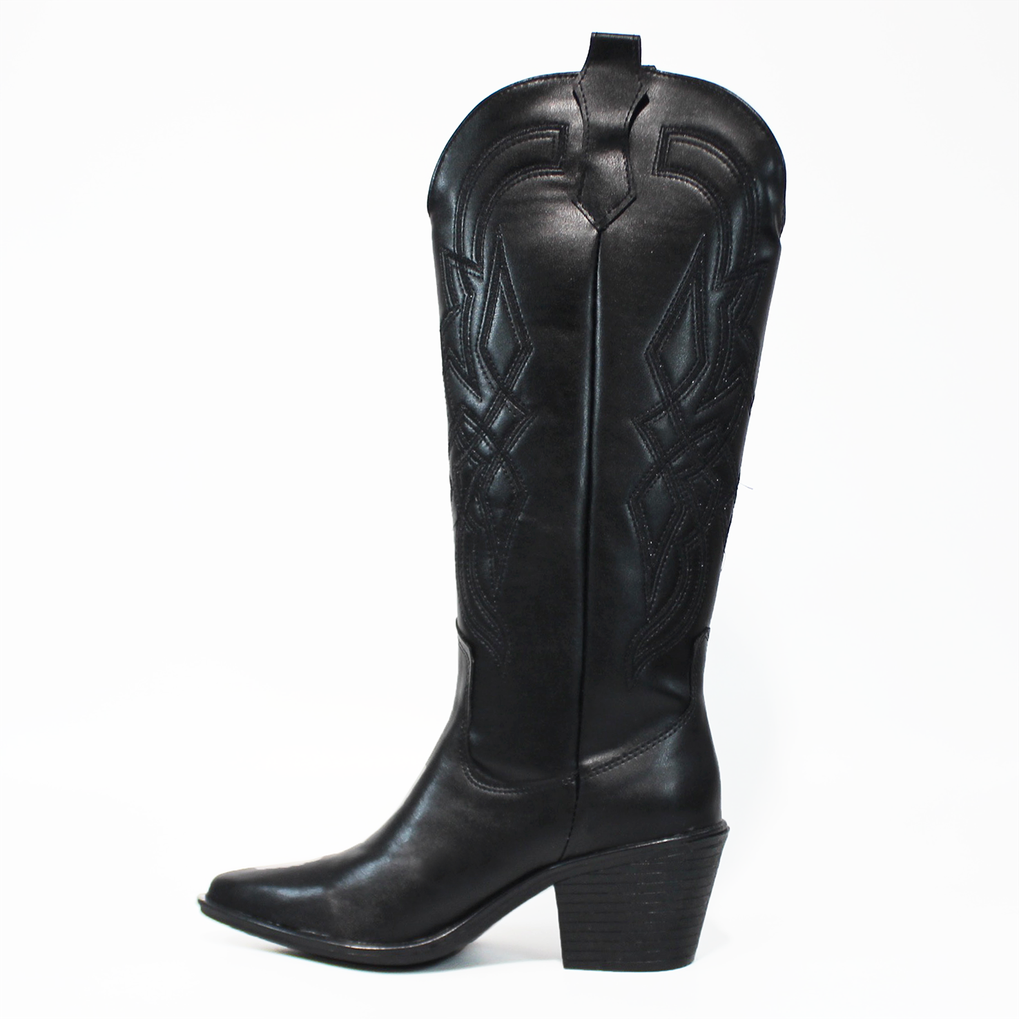 Bota Vaquera Alta Negro con Bordado de Dama TACZA