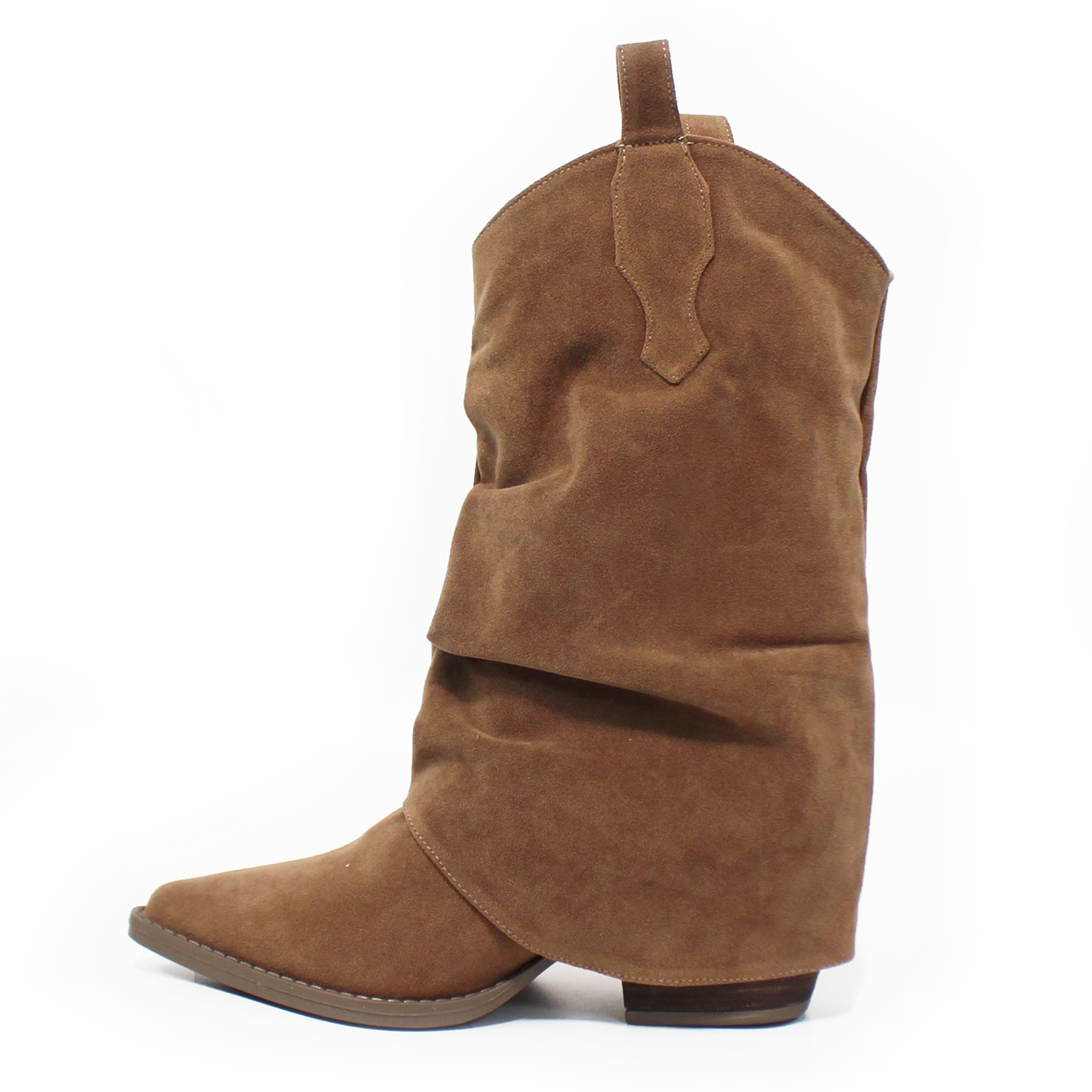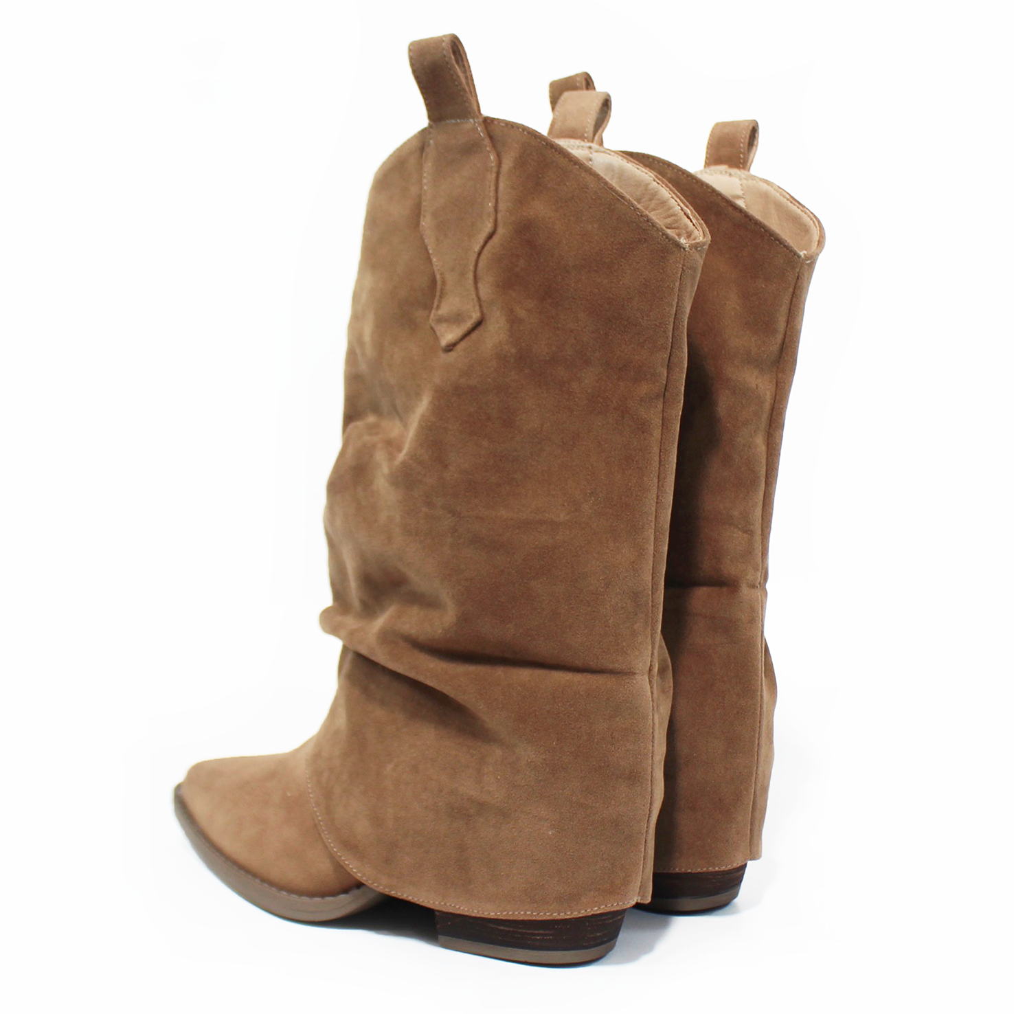Bota Vaquera Arena Gamuza Tubo Medio con Capa de Dama TACZA