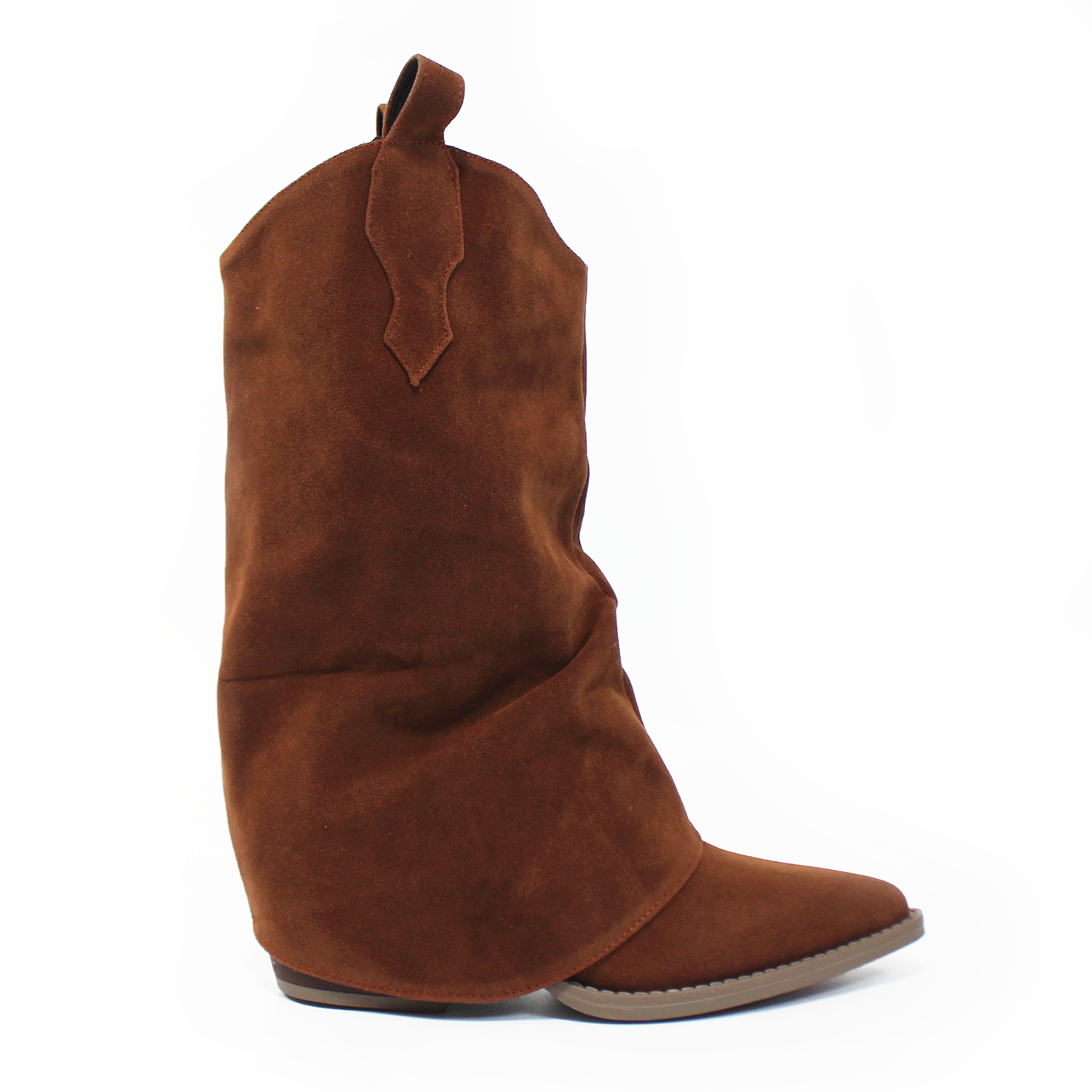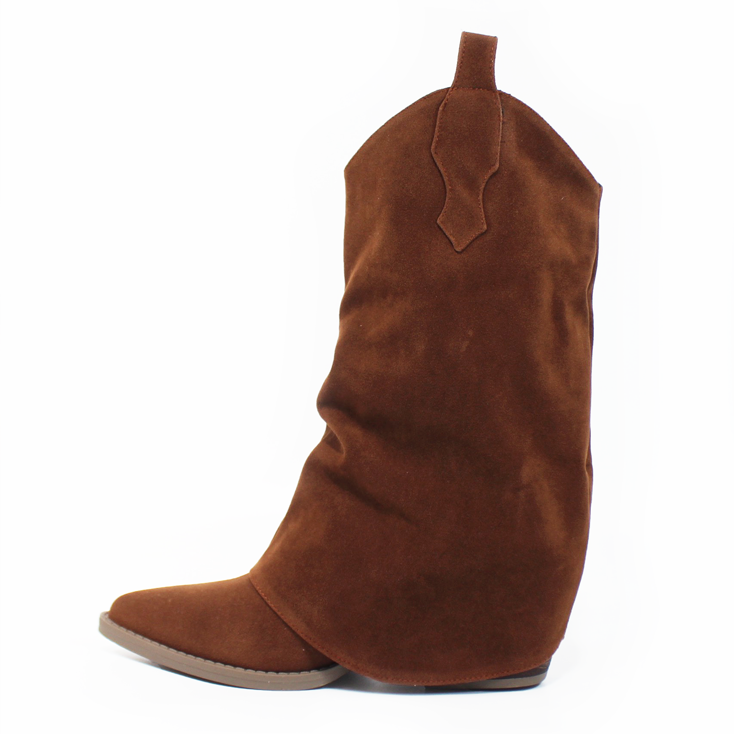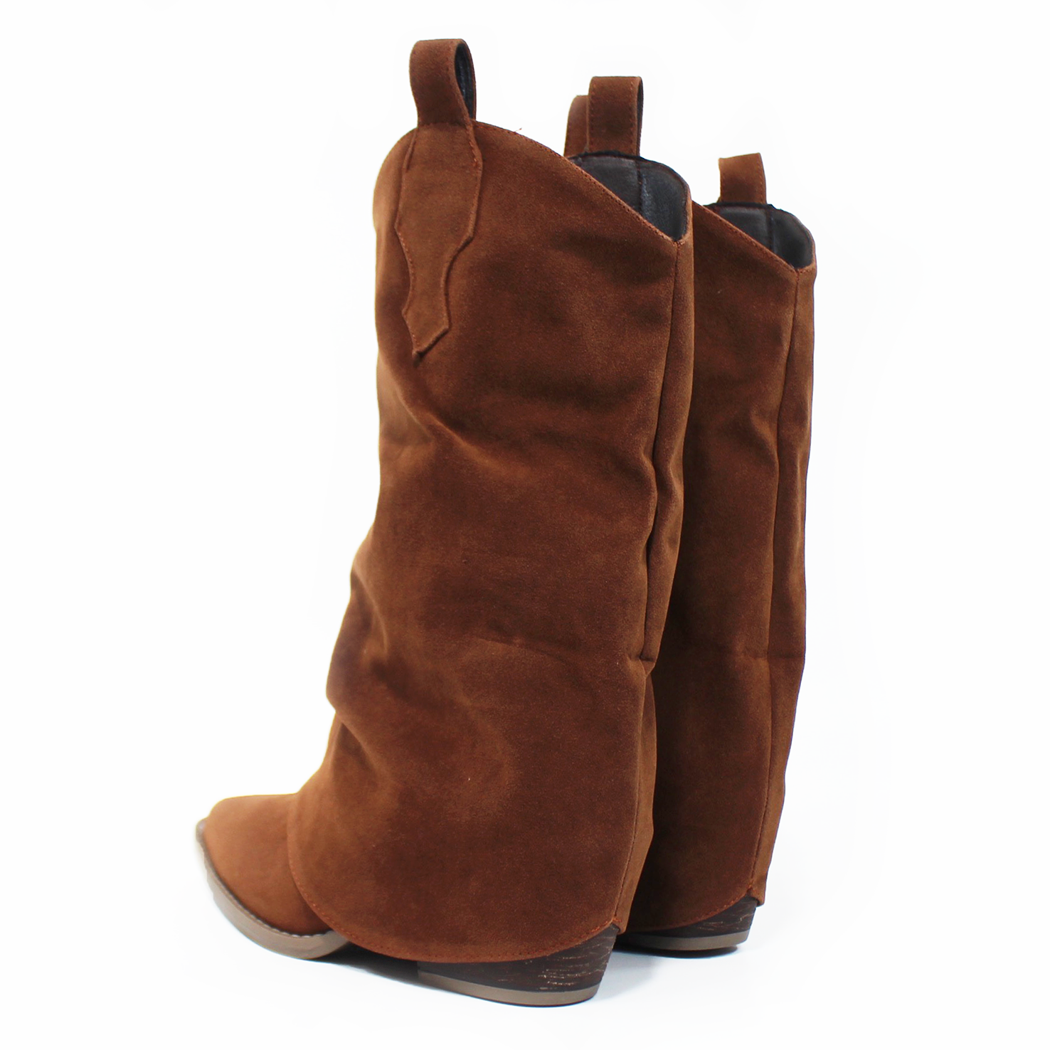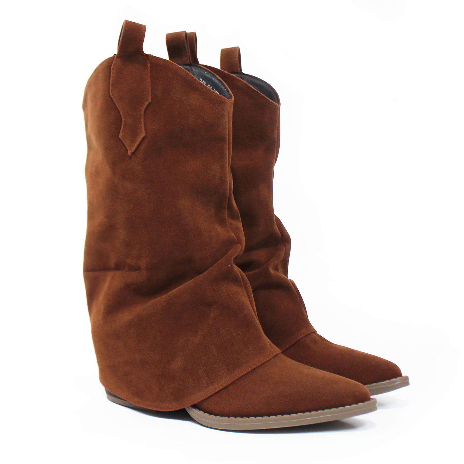 Bota Vaquera Café Gamuza Tubo Medio con Capa de Dama TACZA