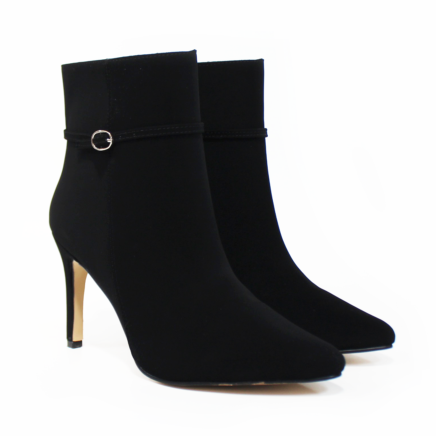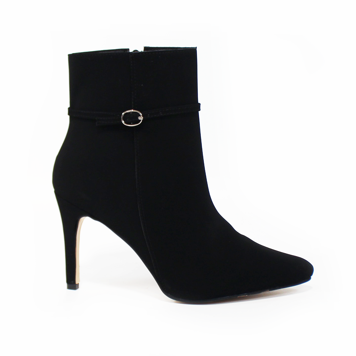 Botín Puntal de Vestir Negro Ante Tacón Stiletto de Dama TACZA