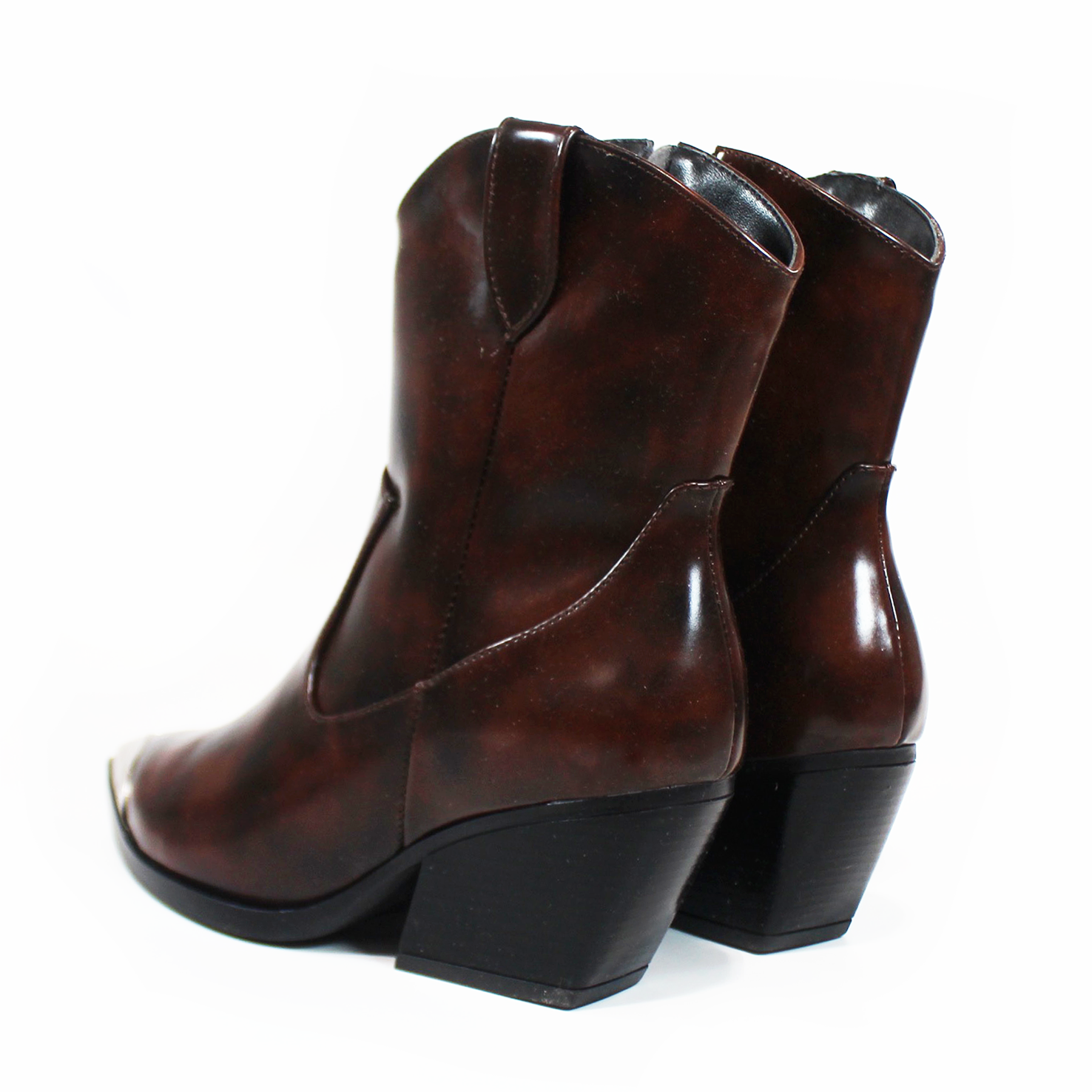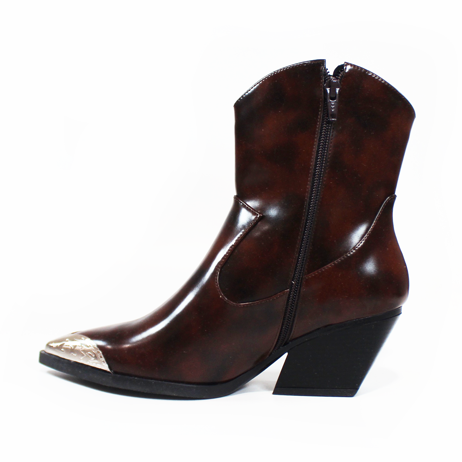 Botín Vaquera con Punta Metálica Marron Brocholeado de Dama SENTIES