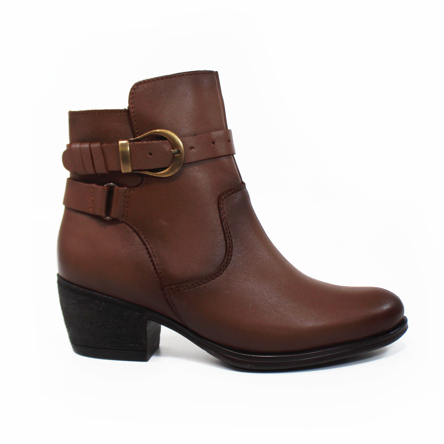 Botín Vaquero Café de Piel con Detalles de Cintos de Dama VERDE TABACO