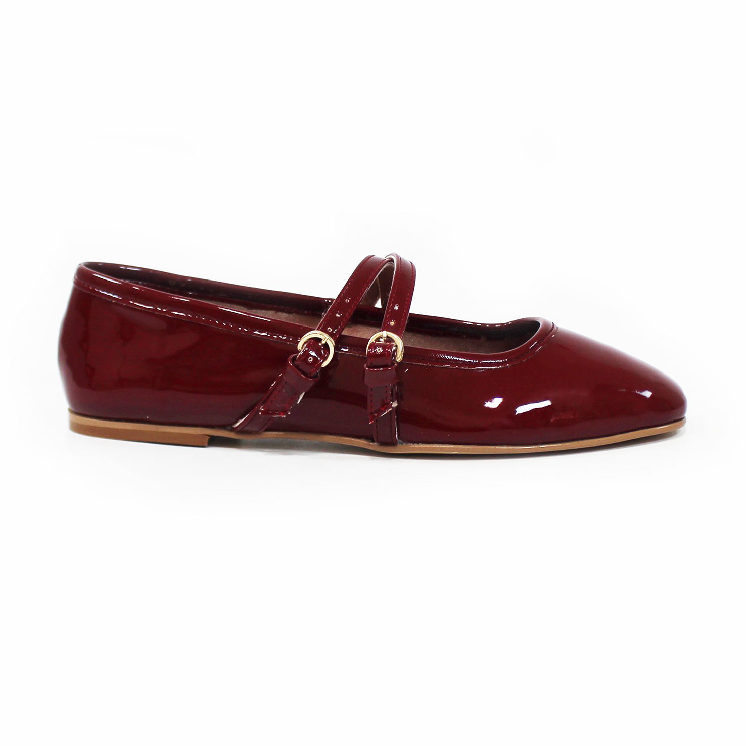 Flat Ballerina Clásica Vino Charol con Pulseras Cruzadas en empeine de Dama TACZA