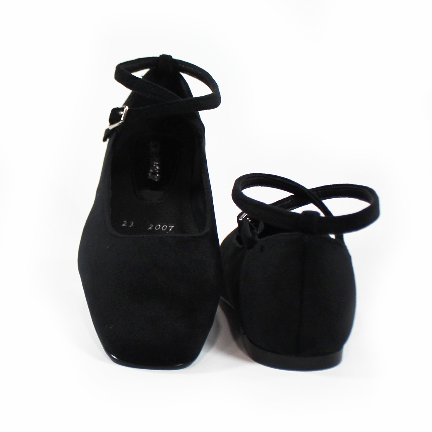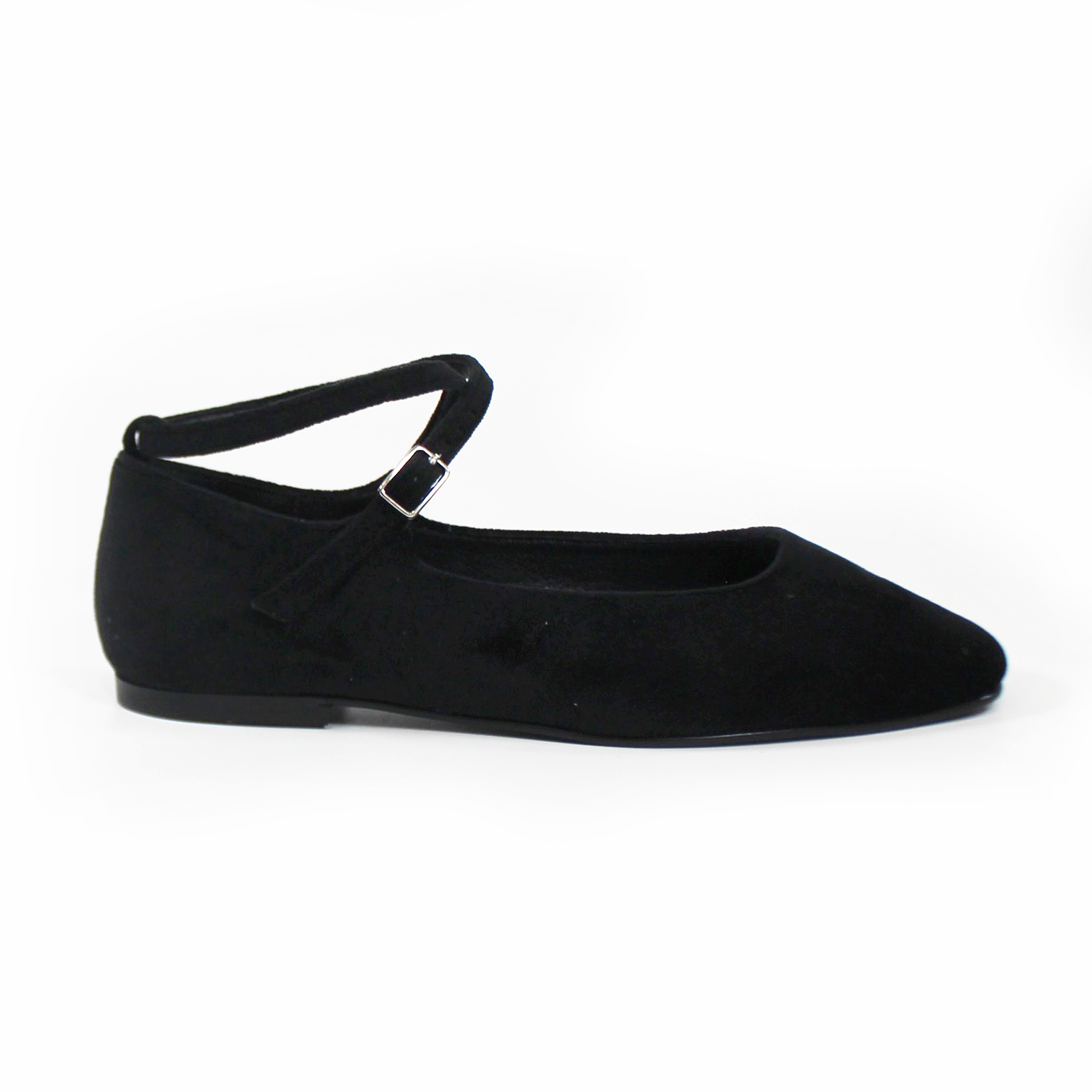 Flat de Piel Negro Terciopelo con Pulsera Cruzada en Tobillo de Dama STEFANIA