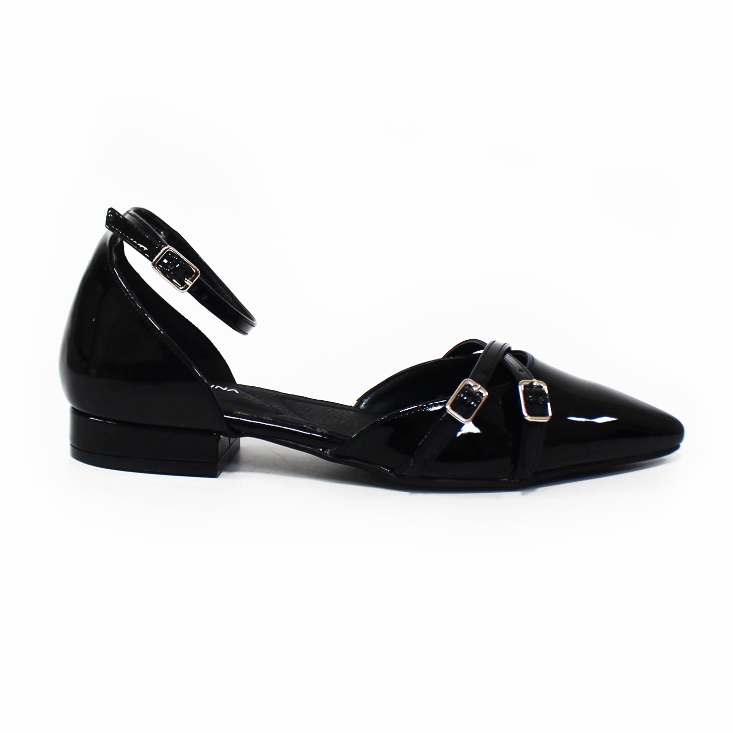 Flat Puntal con Talón y Pulsera Negro Charol de Dama LADY PAULINA