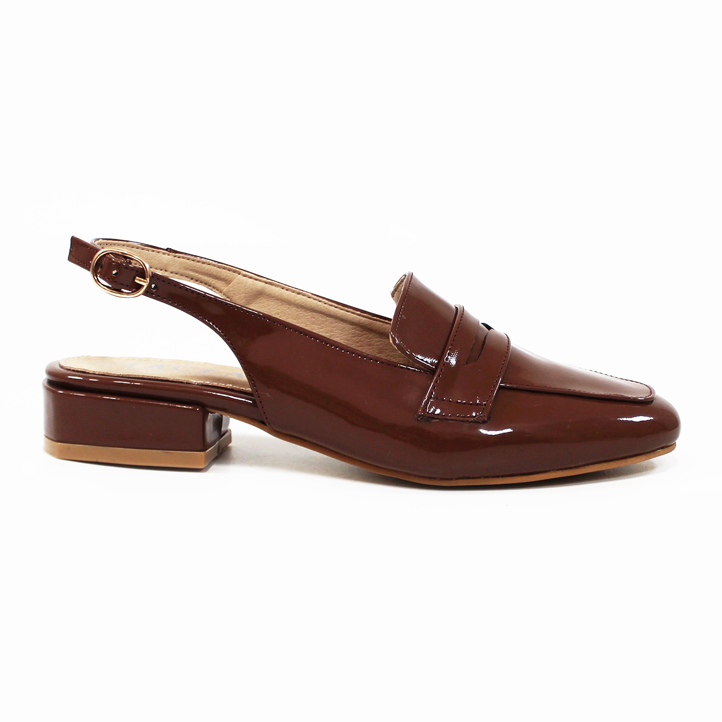 Mocasín Clásico Destalonado Café Charol de Dama TACZA