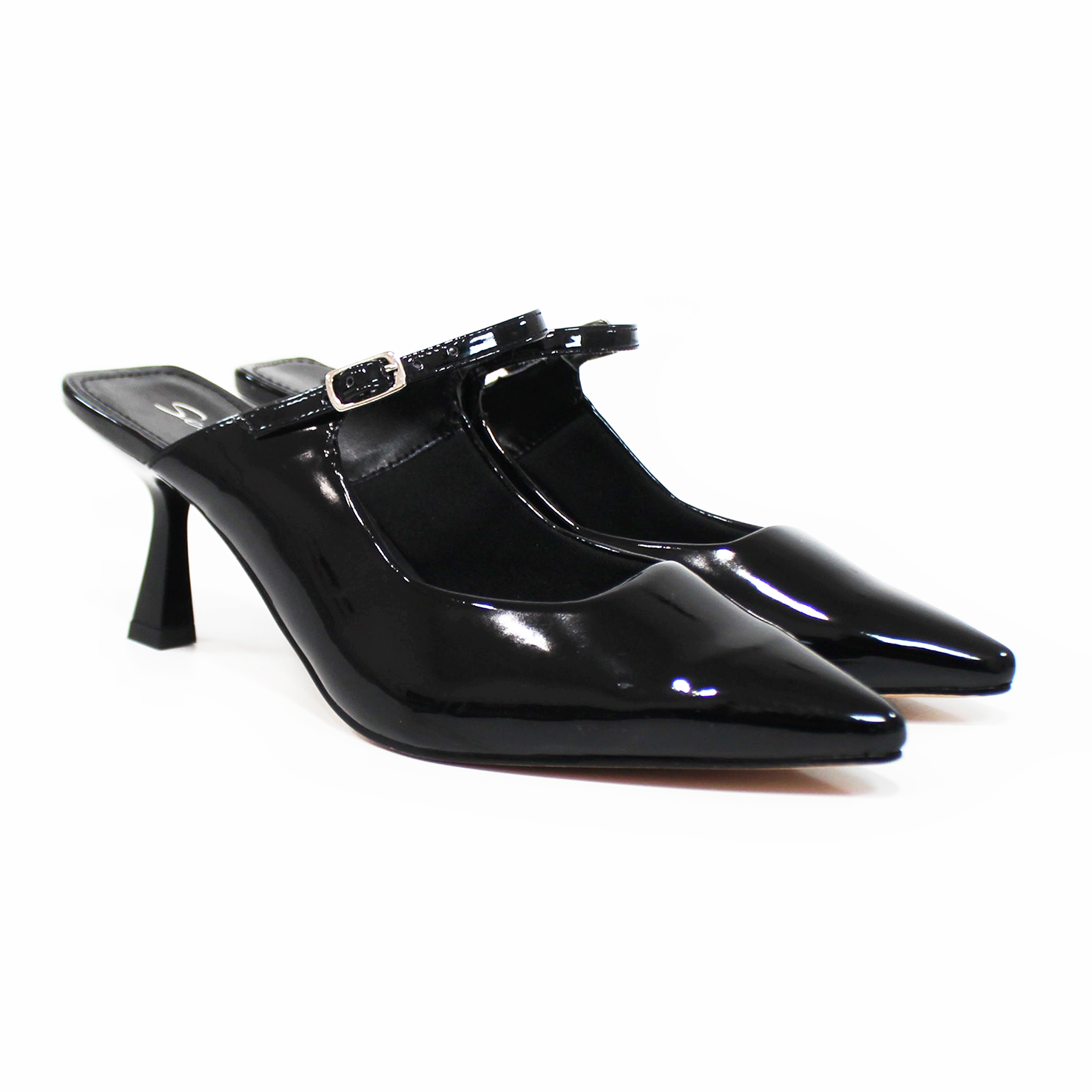 Mule Puntal de Tacón Negro Charol de Dama SENTIES