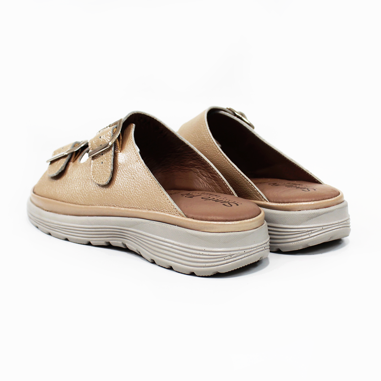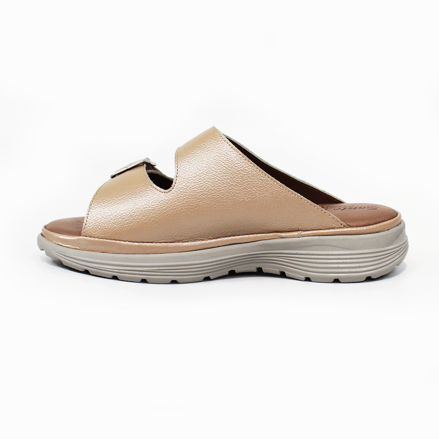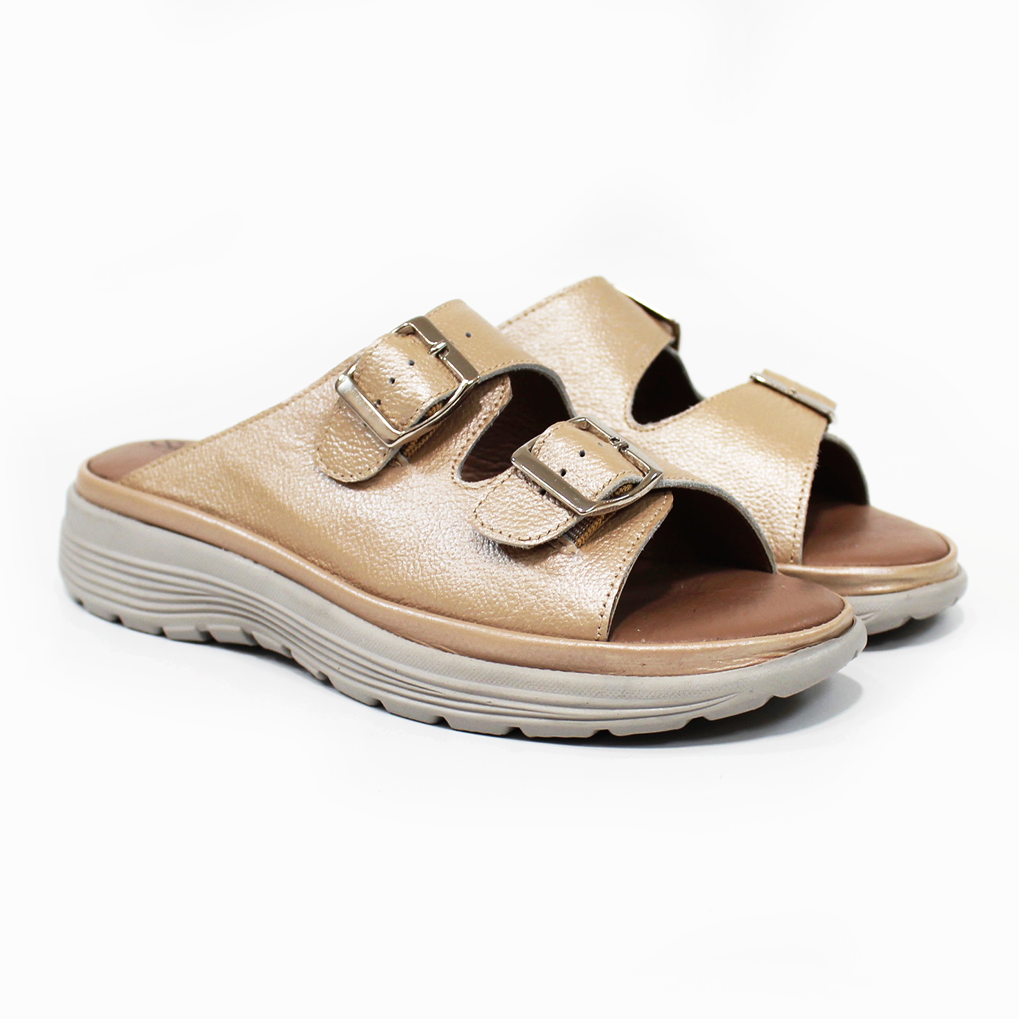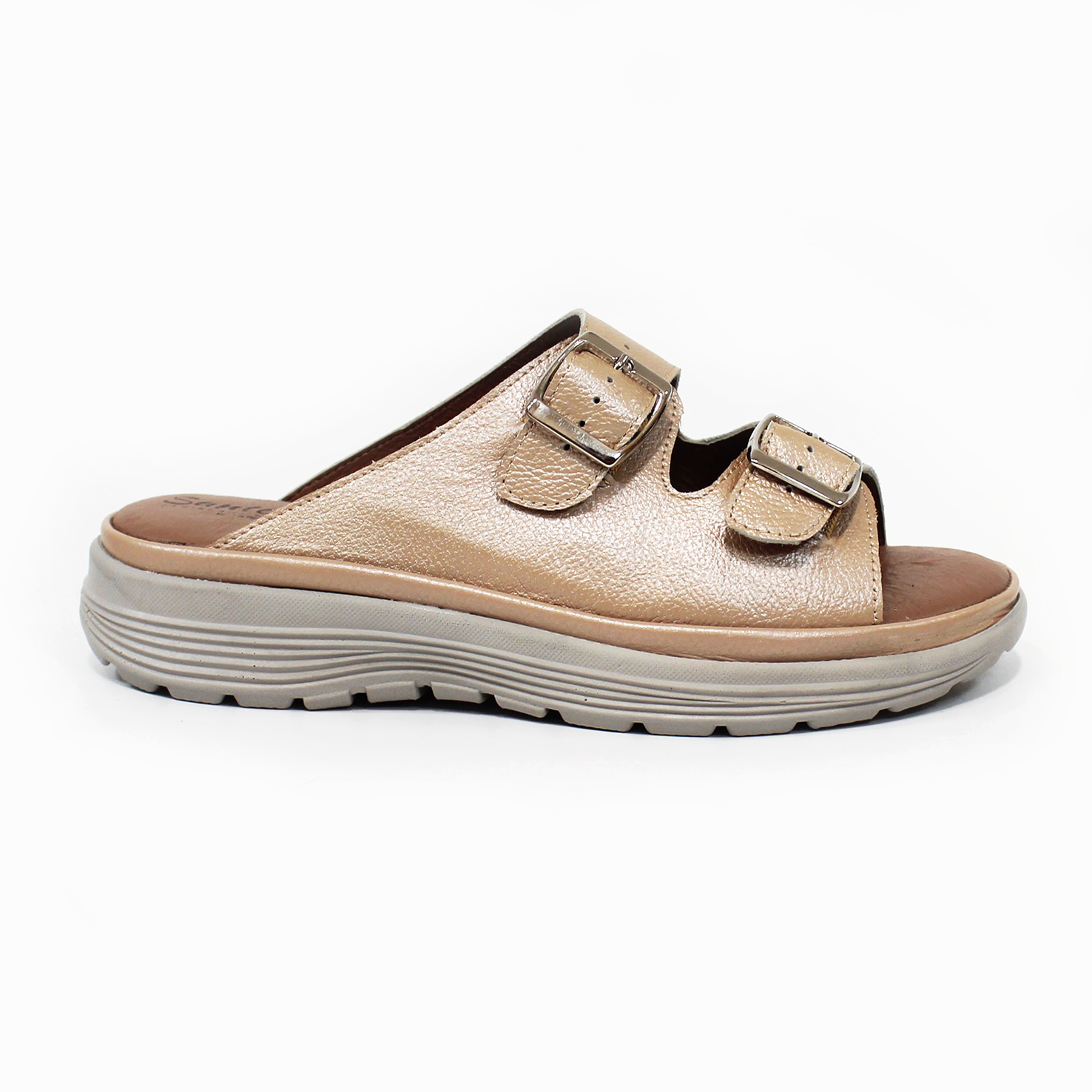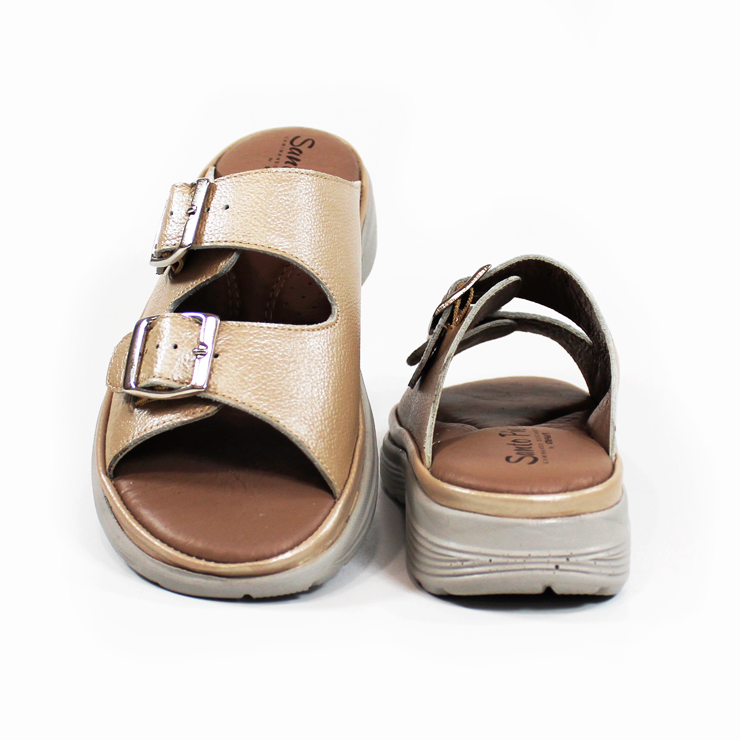 Sandalia Confort de Piel Doble Hebilla Oro de Dama STEFANIA