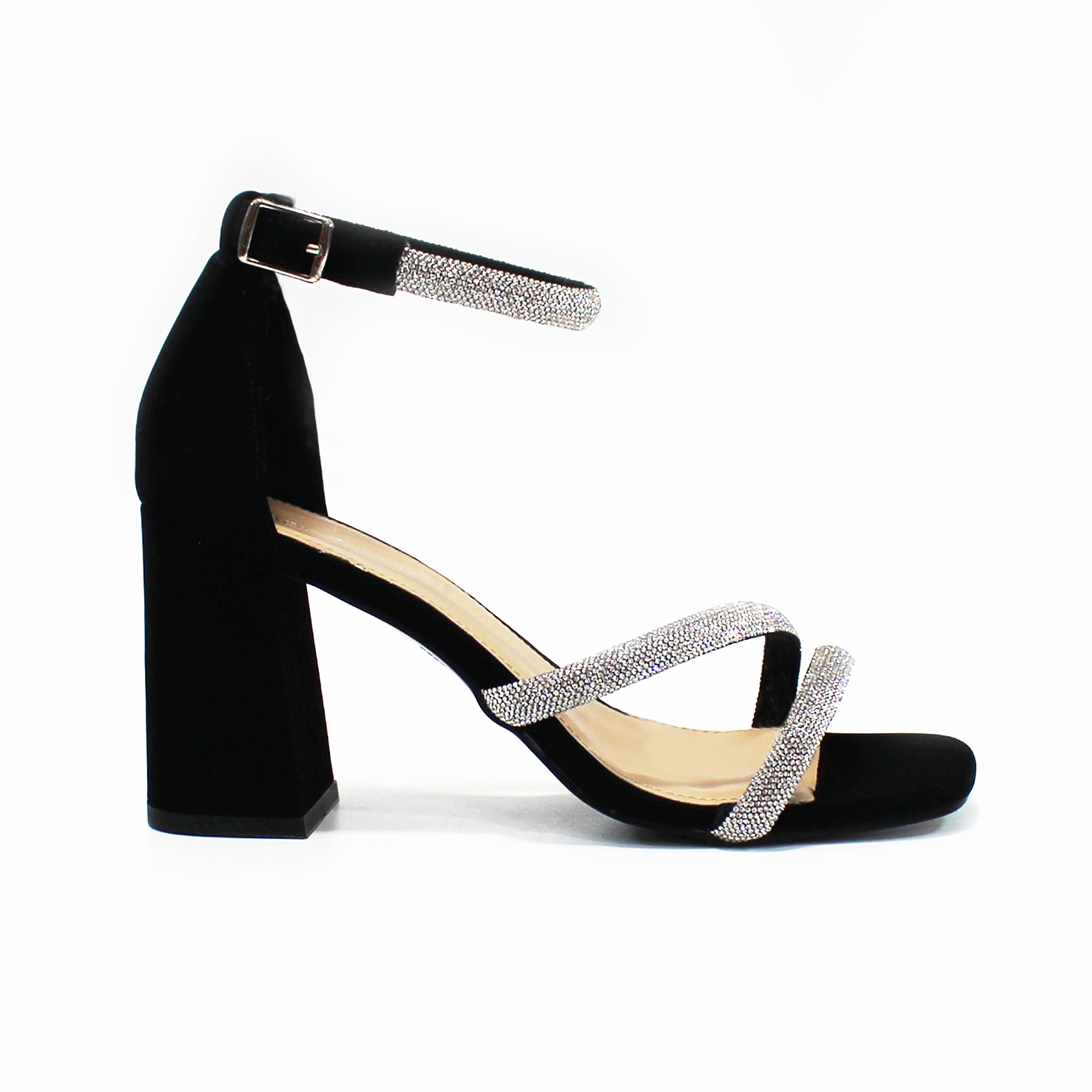 Sandalia de Fiesta Negro con Tiras de Brillos de Dama LADY PAULINA
