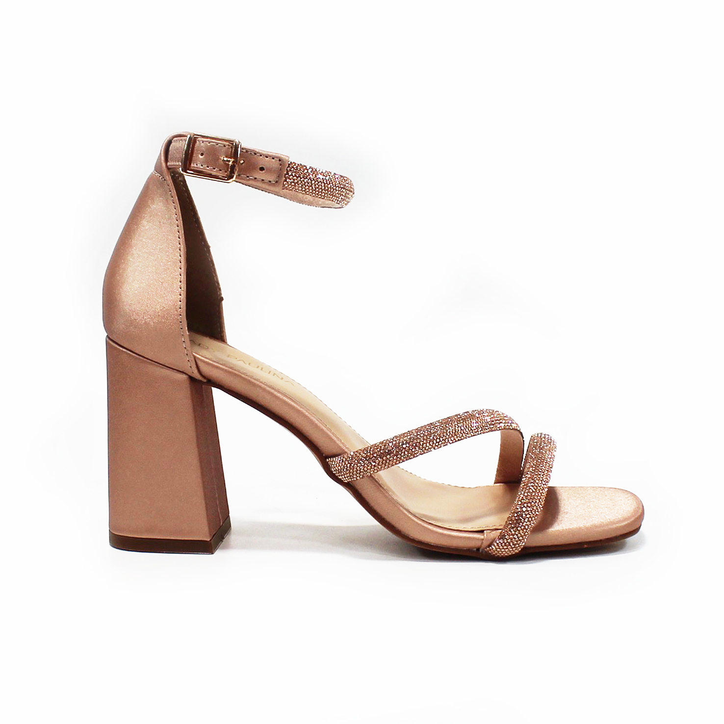 Sandalia de Fiesta Oro Rosado con Tiras de Brillos de Dama LADY PAULINA
