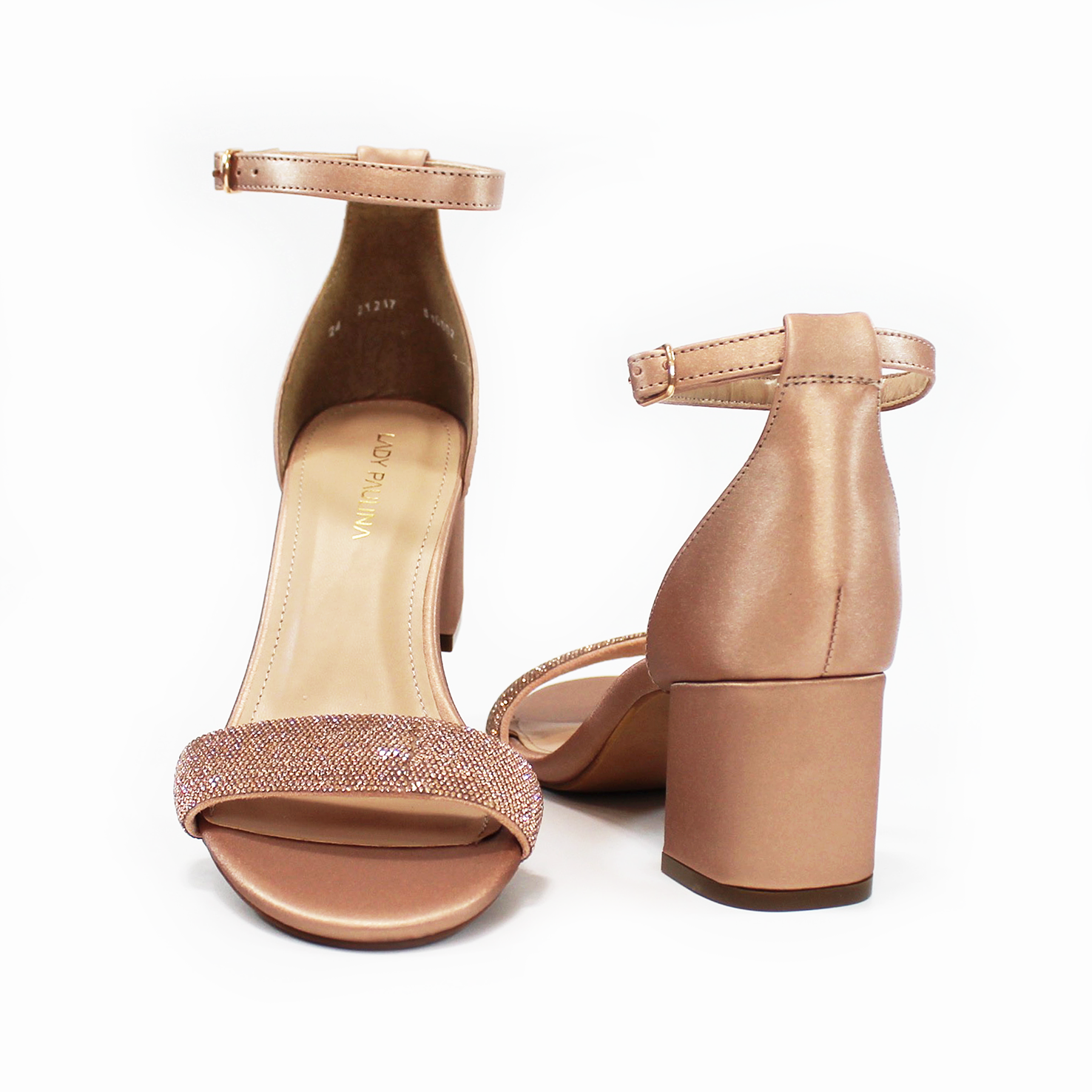 Sandalia de Fiesta Oro Rosado de Tacón Bajo con Pulsera y Brillos de Dama LADY PAULINA