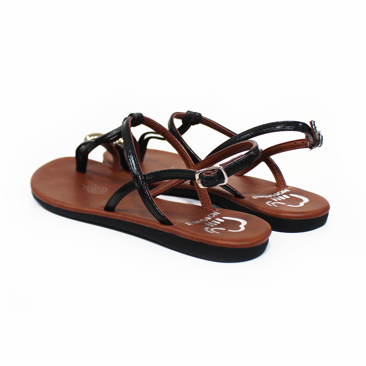 Sandalia de Plana NOMADAS Negro con Dedal Metálico de Dama