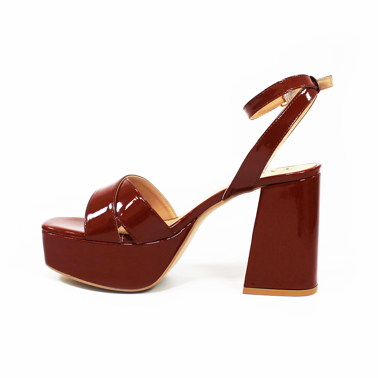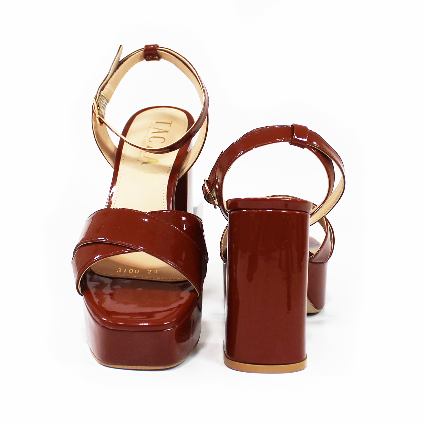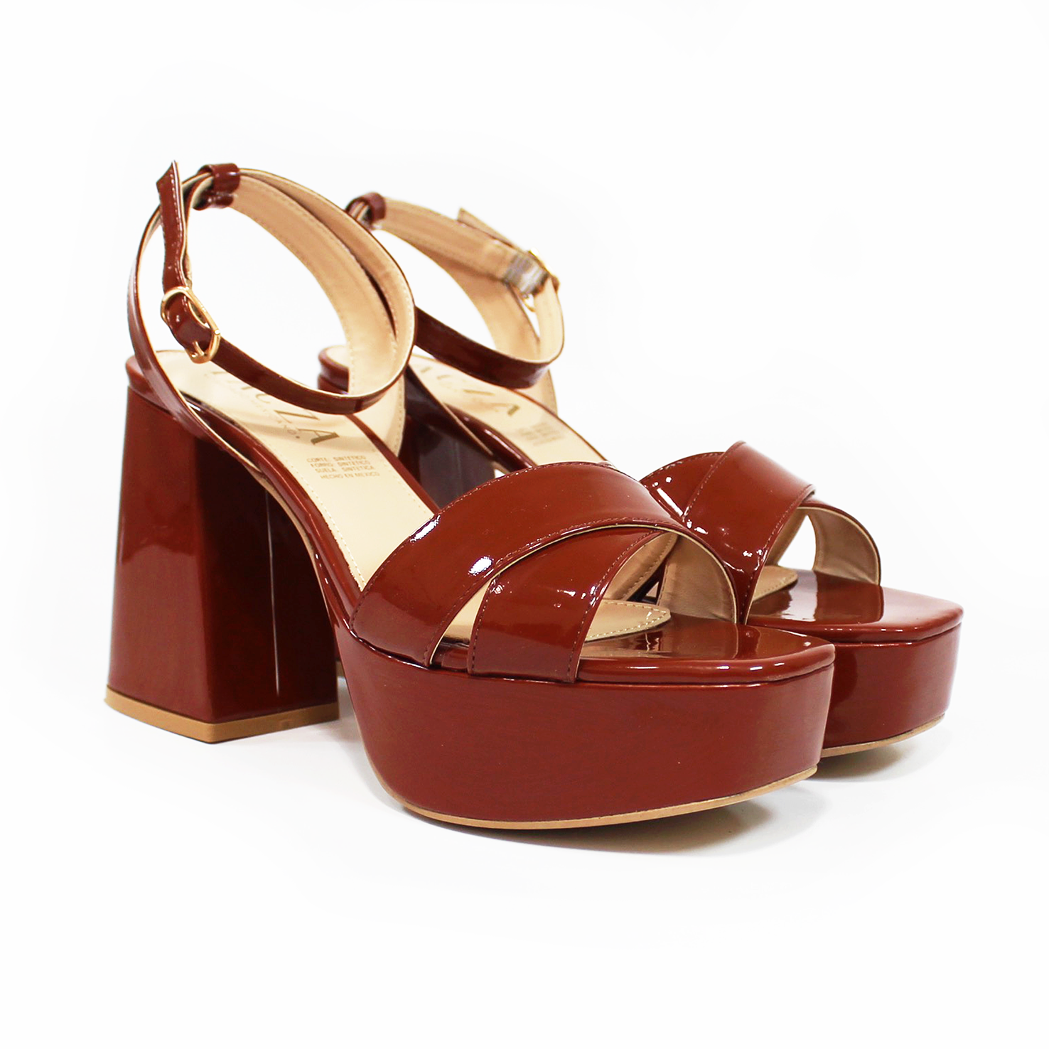 Sandalia de Plataforma Café Charol Cruzada Destalonada con Pulsera TACZA