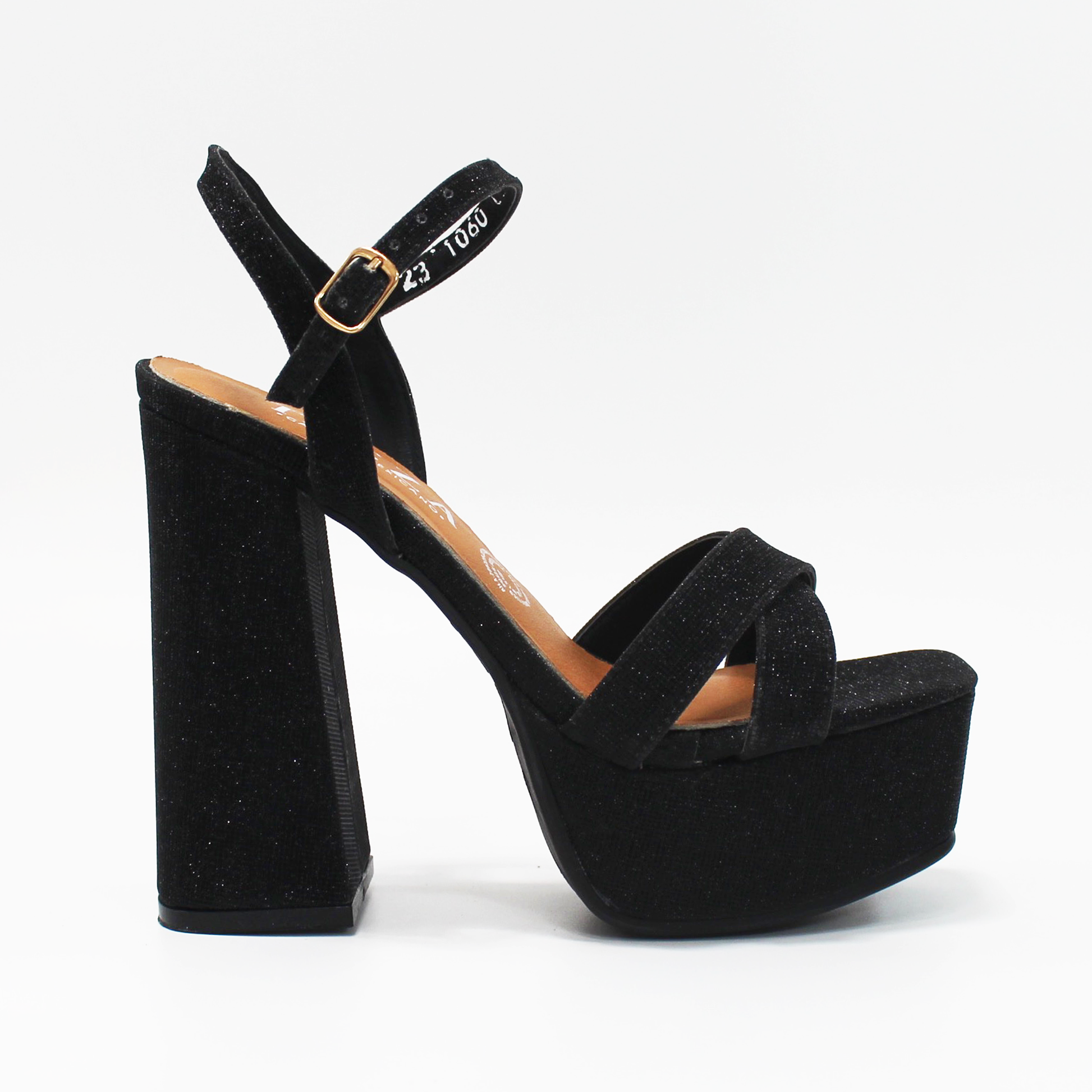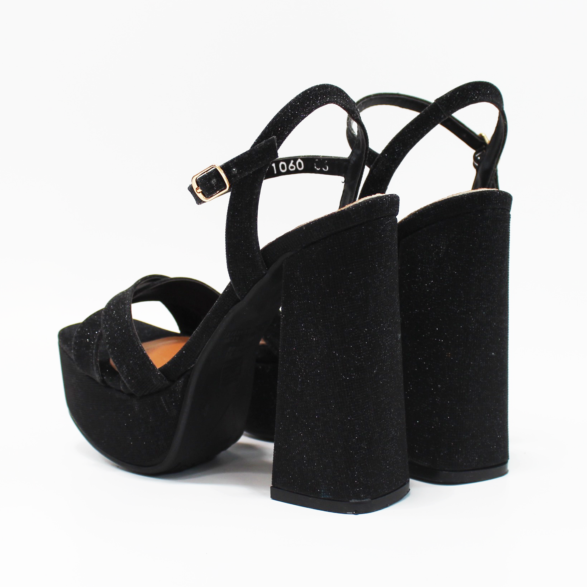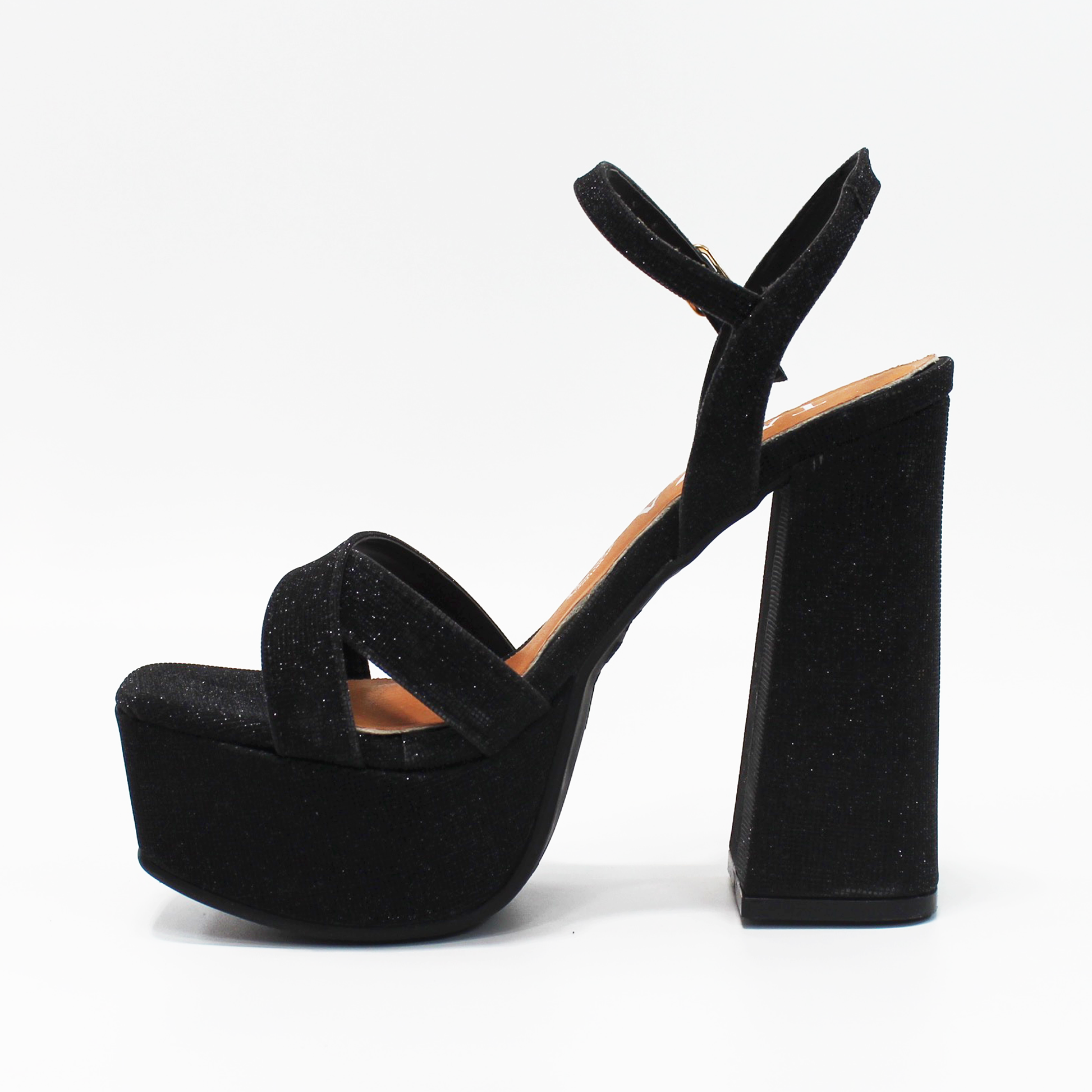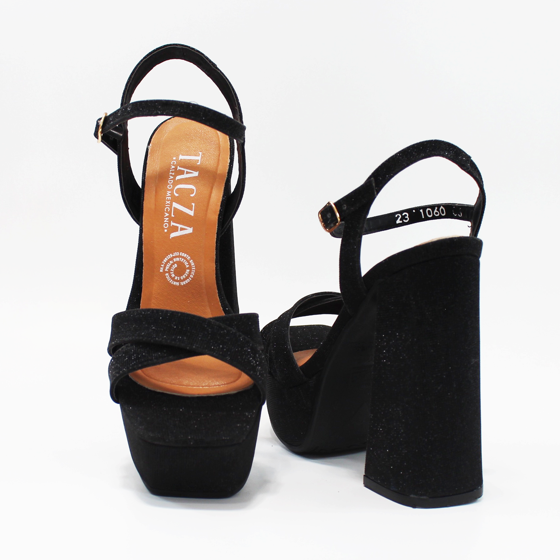 Sandalia de Plataforma Negro Brilloso de Dama TACZA