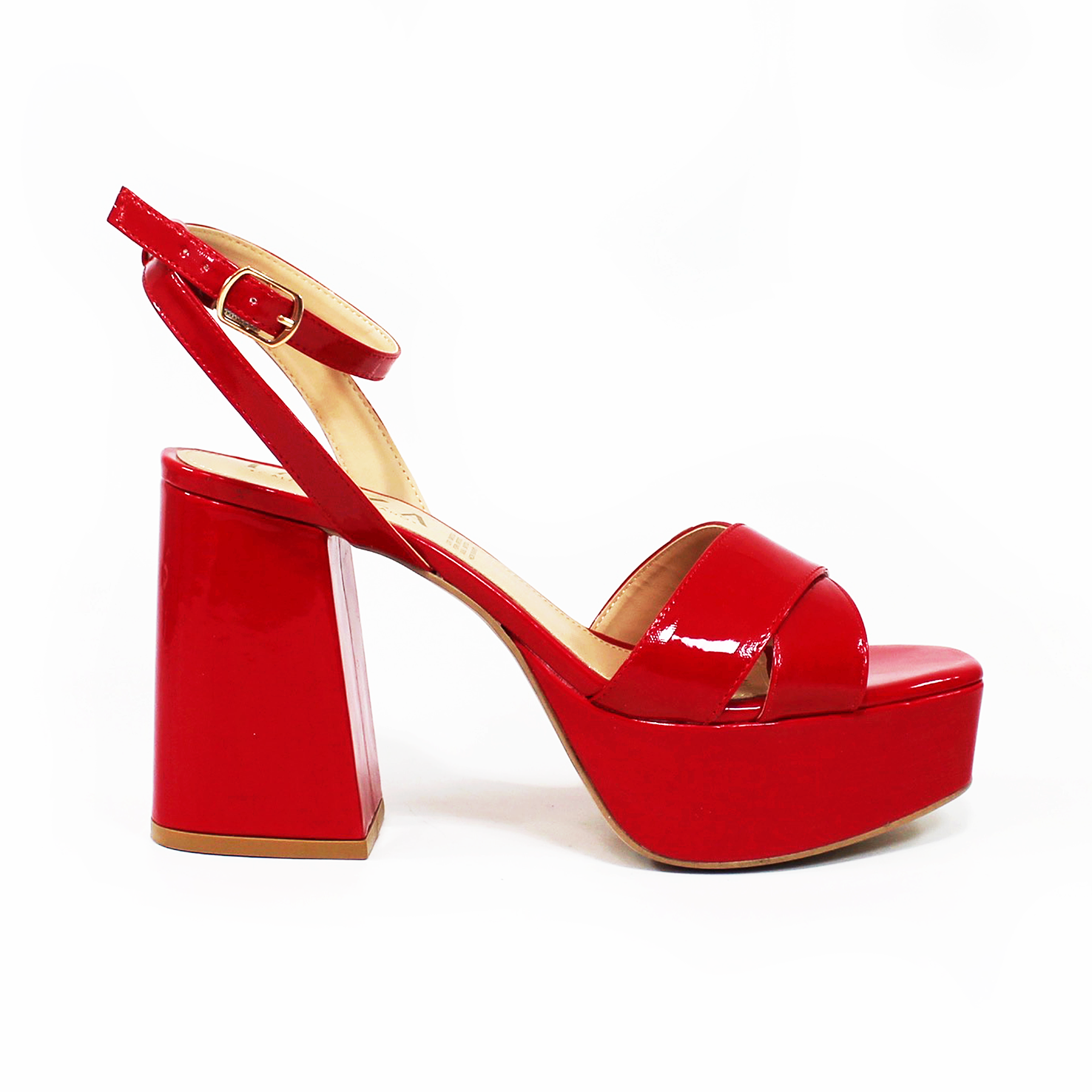 Sandalia de Plataforma Rojo Charol Cruzada Destalonada con Pulsera TACZA
