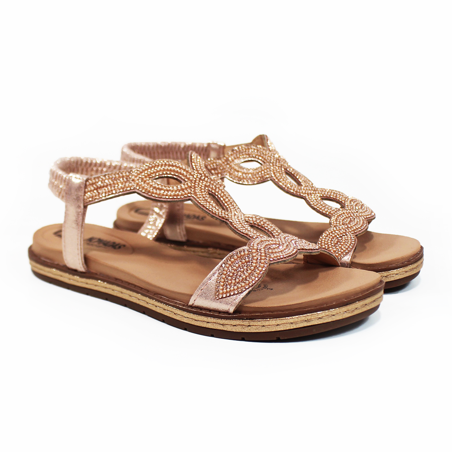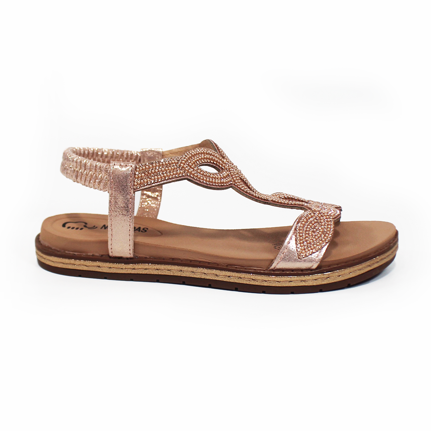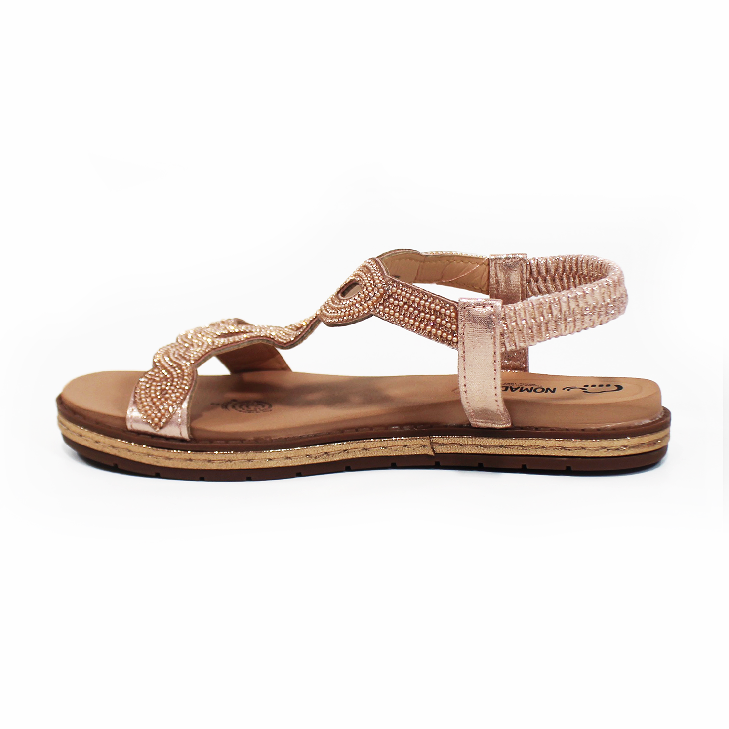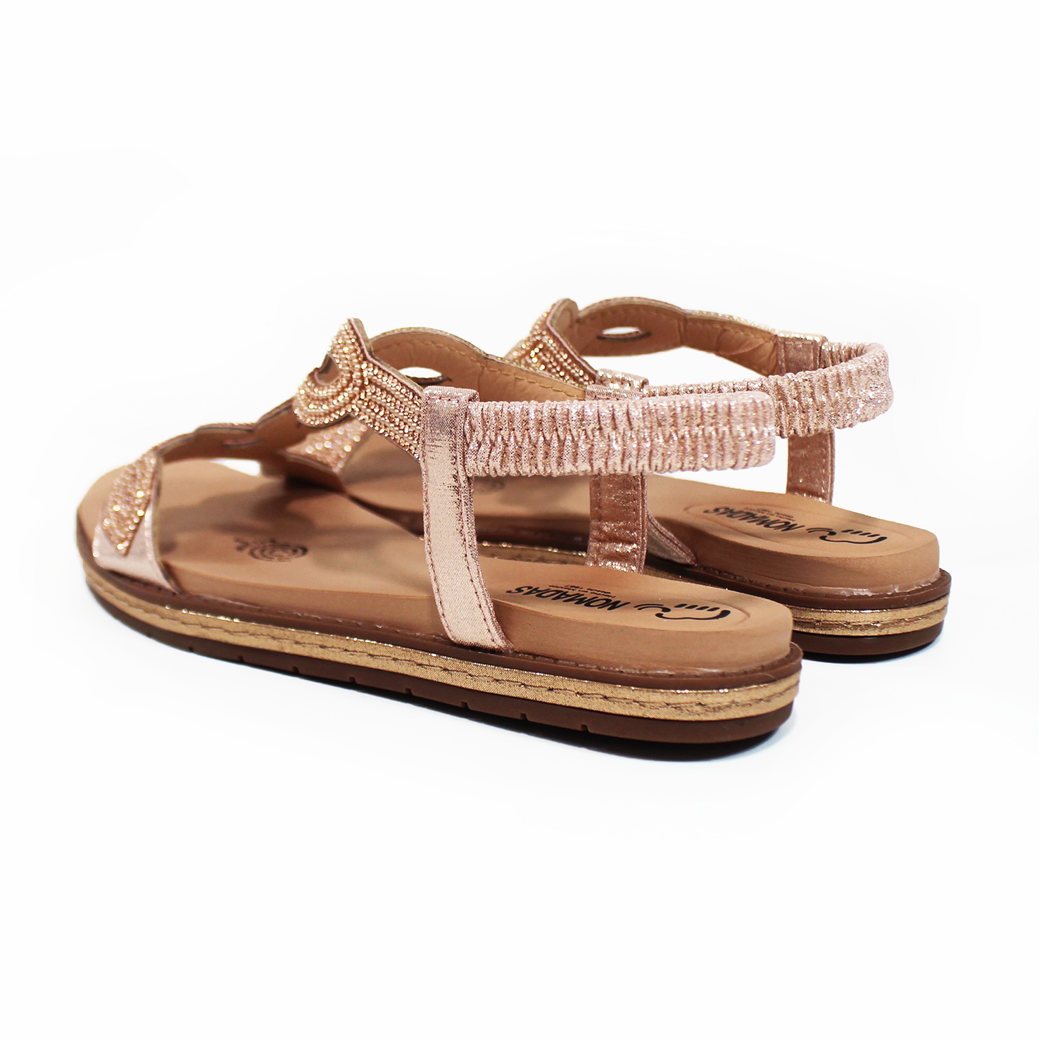 Sandalia NOMADAS de piso Comfy con Pedreria Oro Rosado y Elástico de Dama