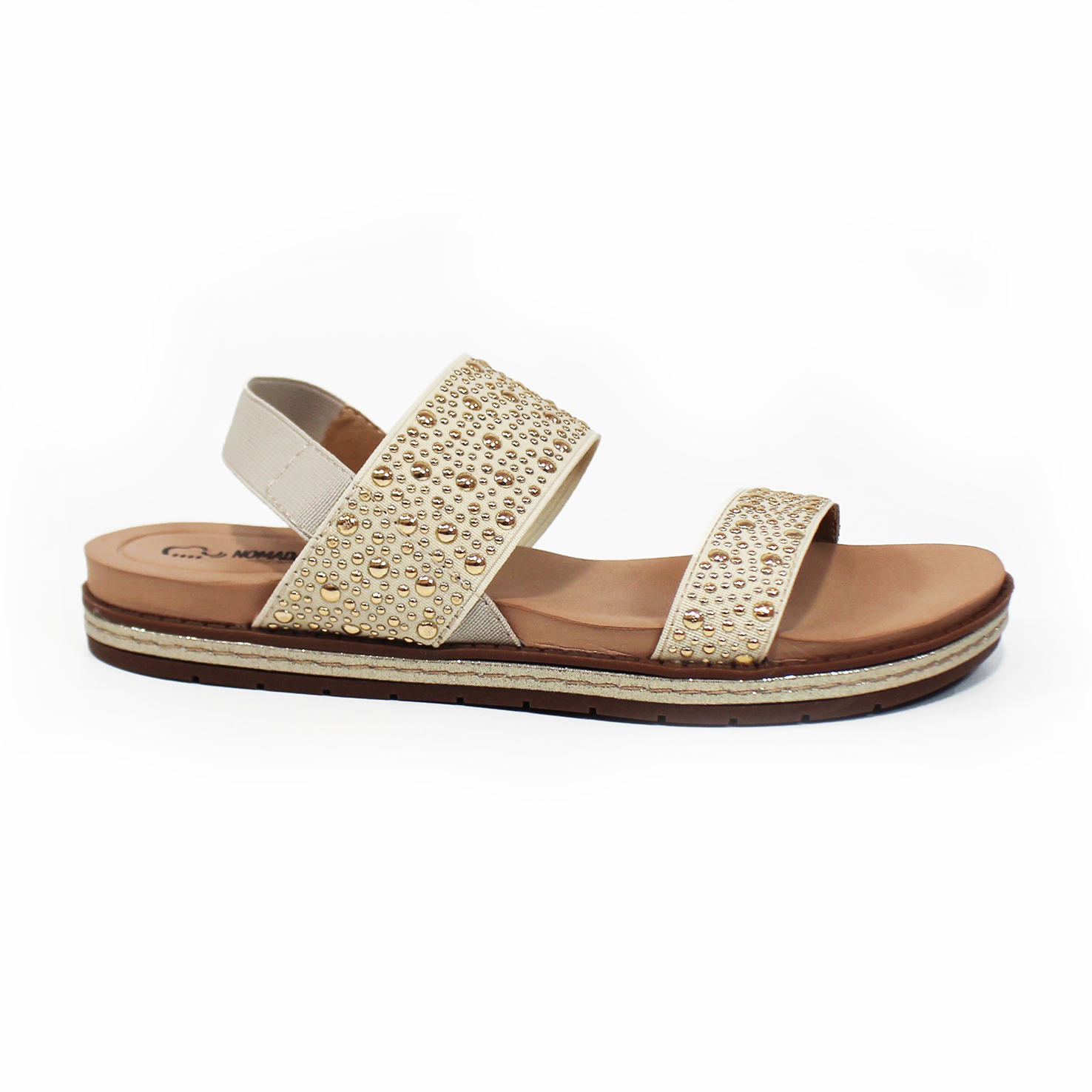 Sandalia NOMADAS de piso Comfy con Tiras Elásticas con Detalles Oro de Dama