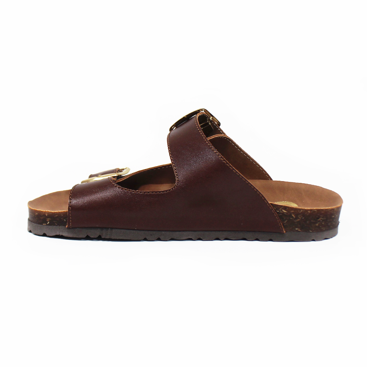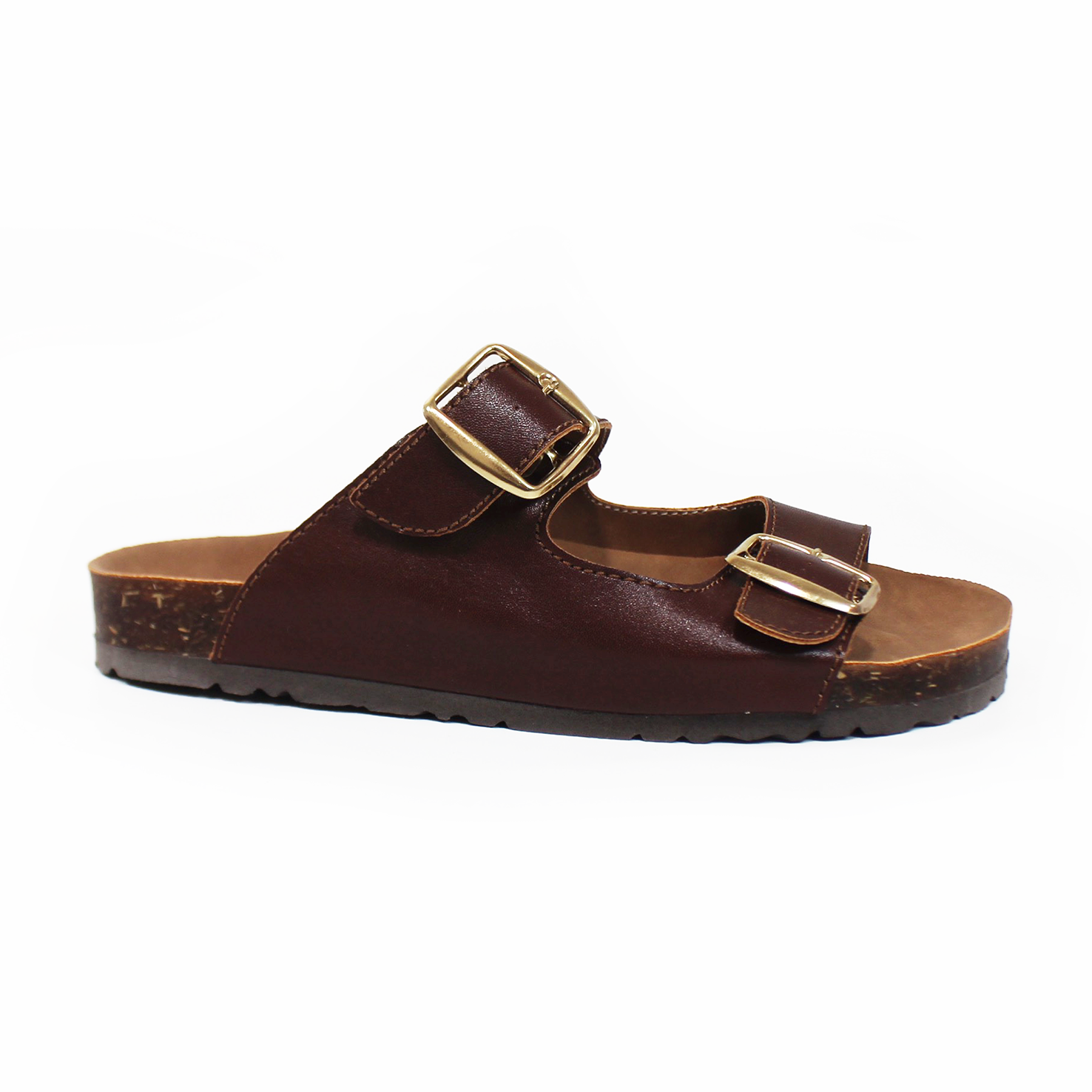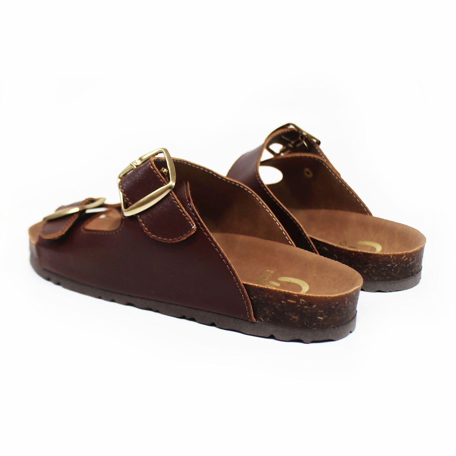 Sandalia NOMADAS doble Hebilla Café con suela Corcho de Dama