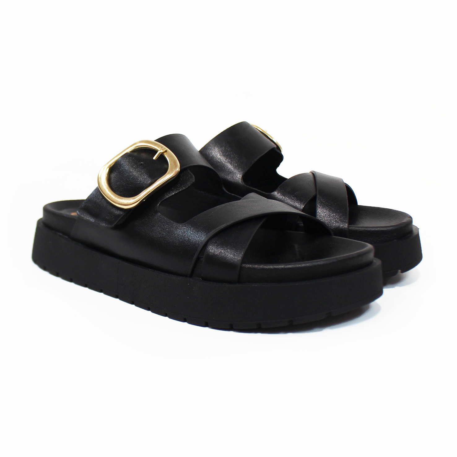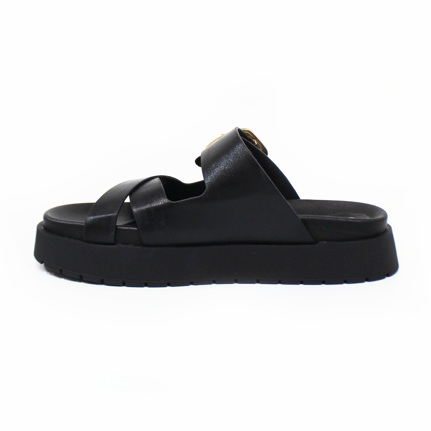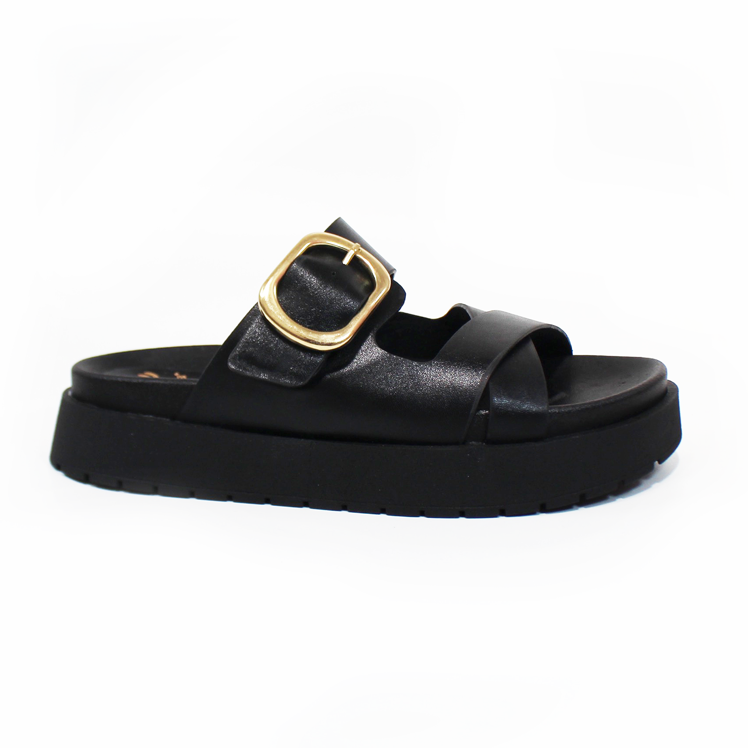 Sandalia Plataforma NOMADAS Negra y Detalle con Hebilla de Dama