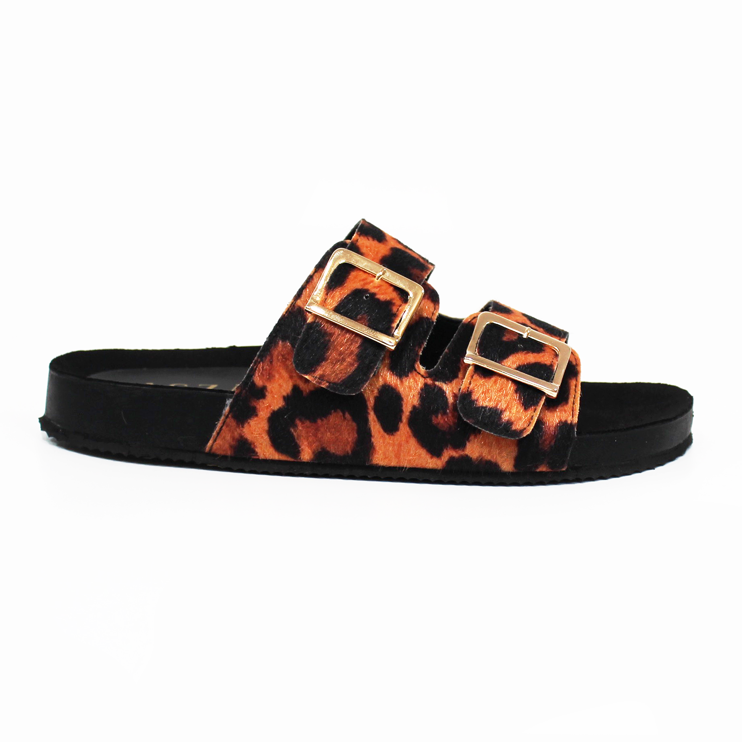 Sandalias de Piso Doble Hebilla Animal Print de Dama TACZA