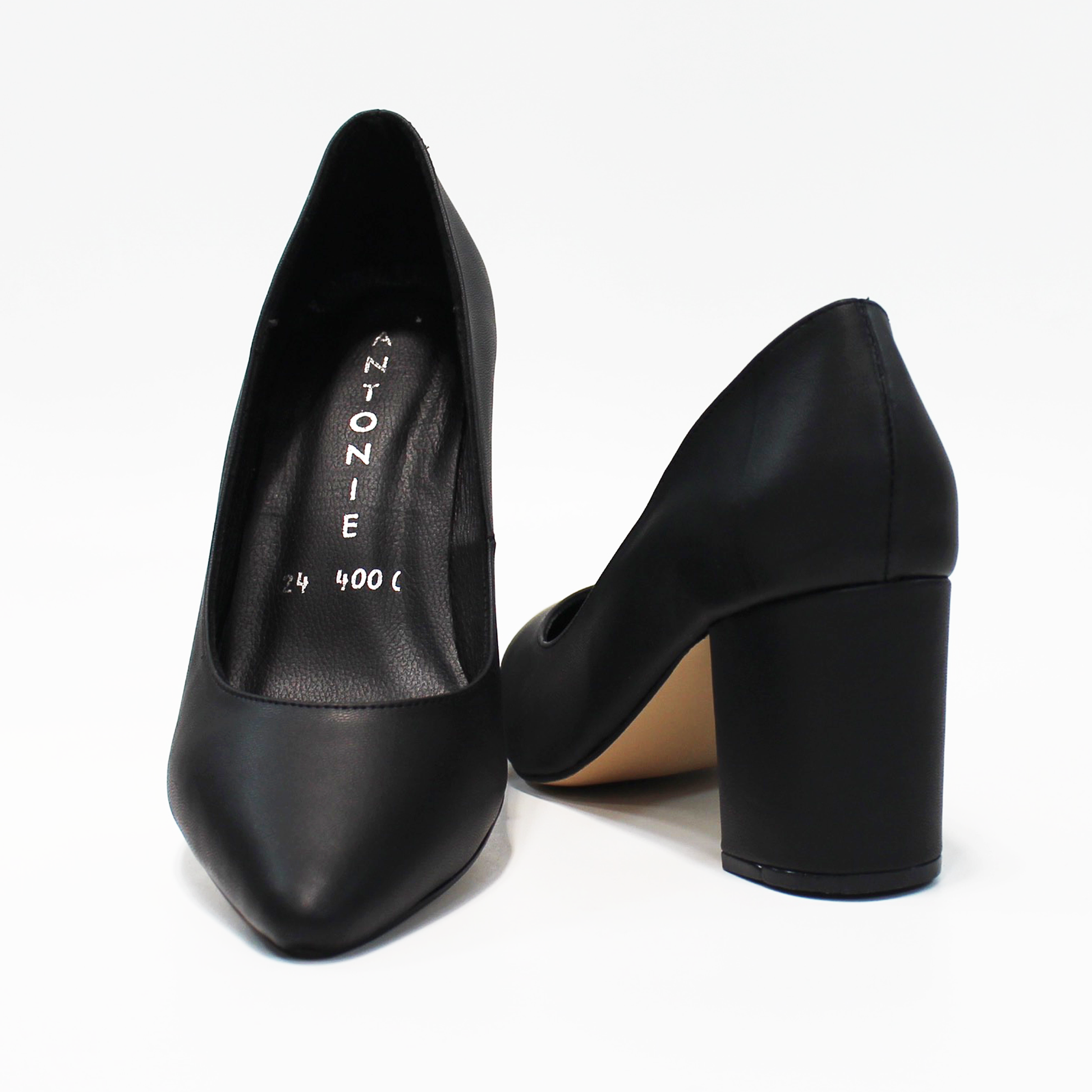 Zapatilla de Piel Tacón Grueso Negro de Dama ANTONIE