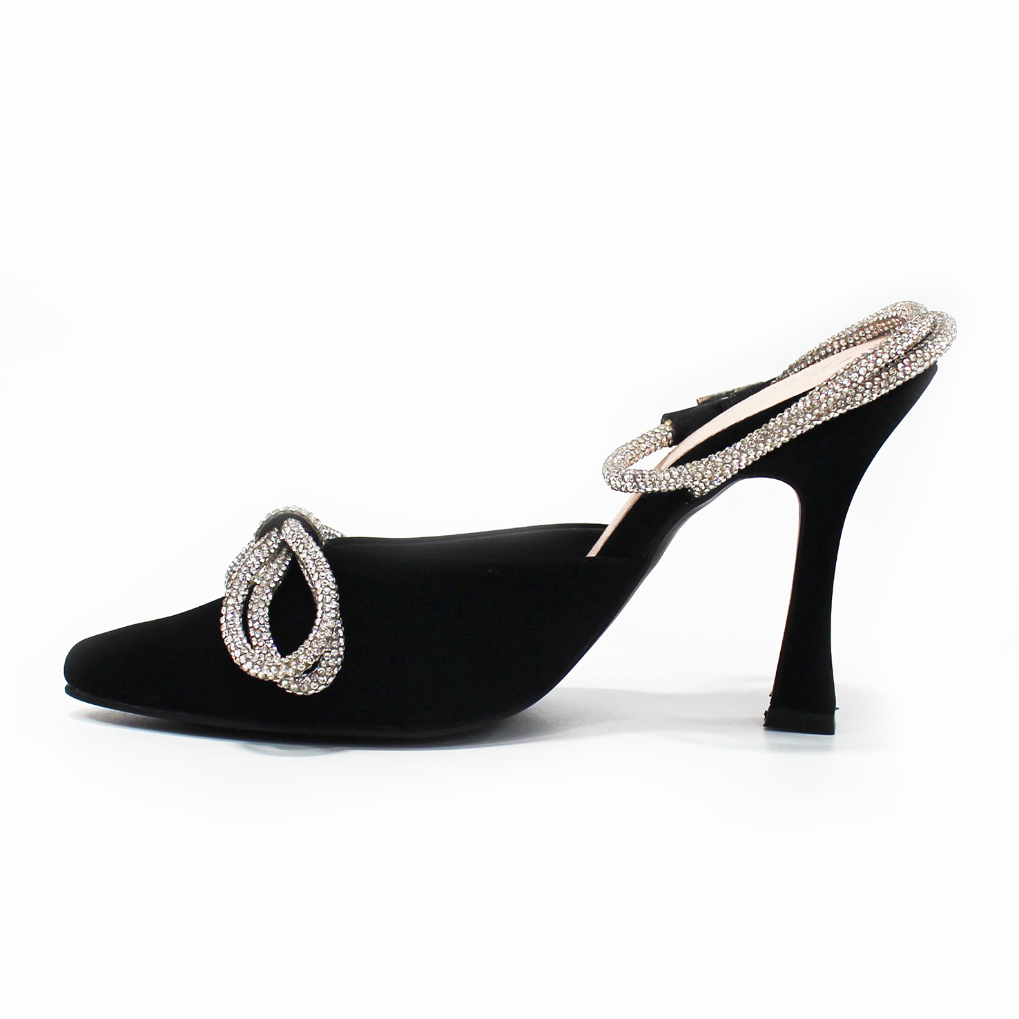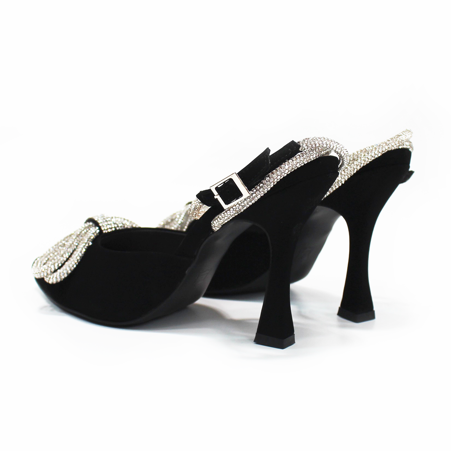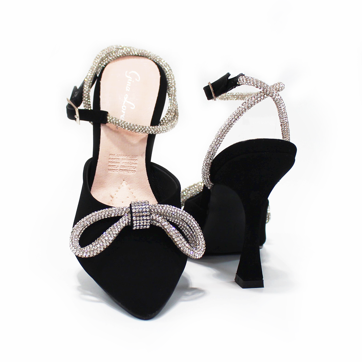 Zapatilla Fiesta Negro Ante con Moño de Brillo de Dama G.LOREN