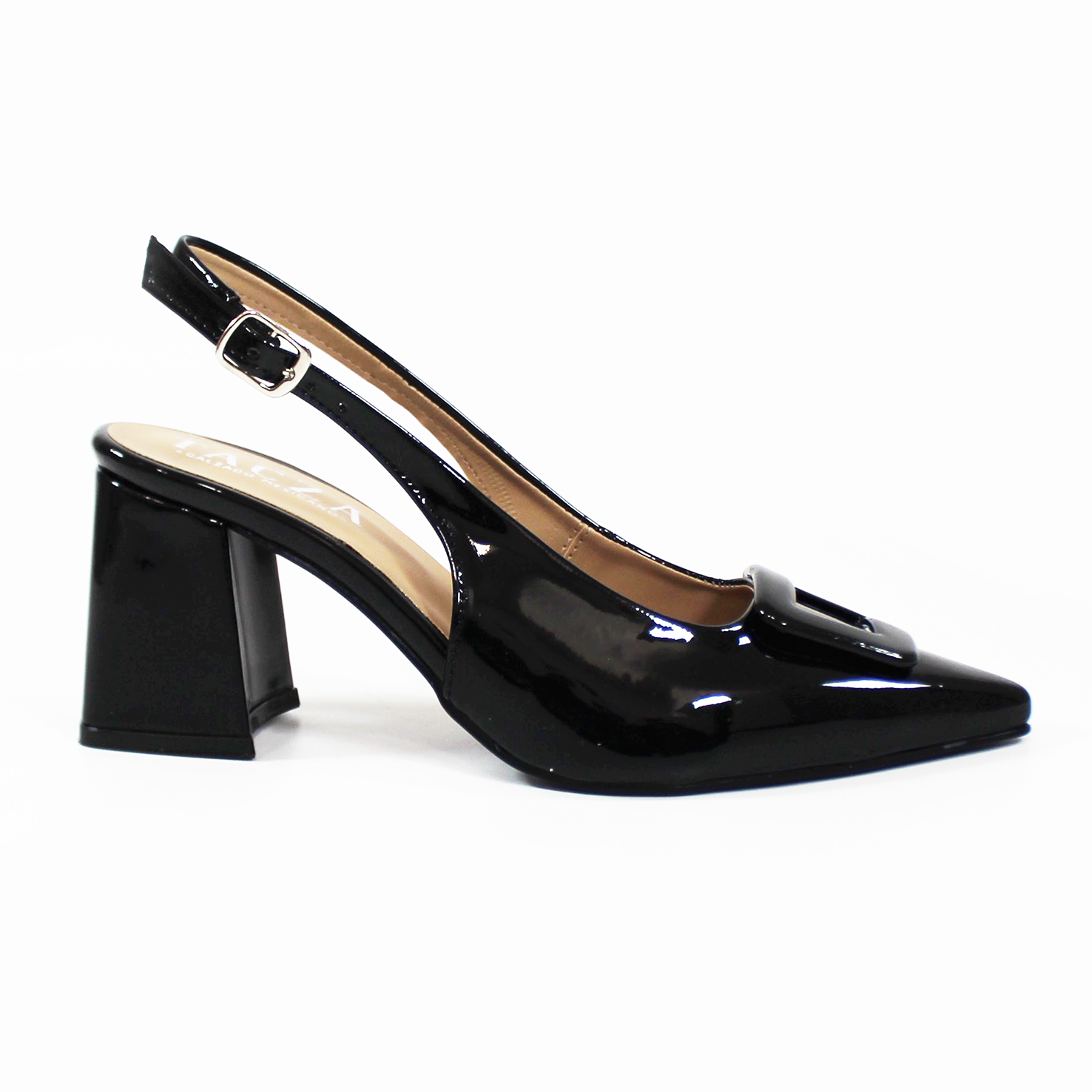 Zapatilla Puntal Destalonada con Botón Cuadrado Negro Charol TACZA