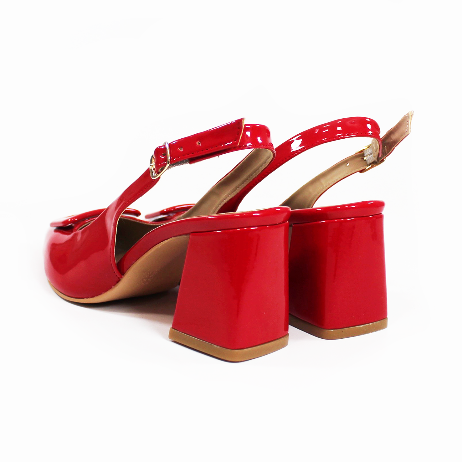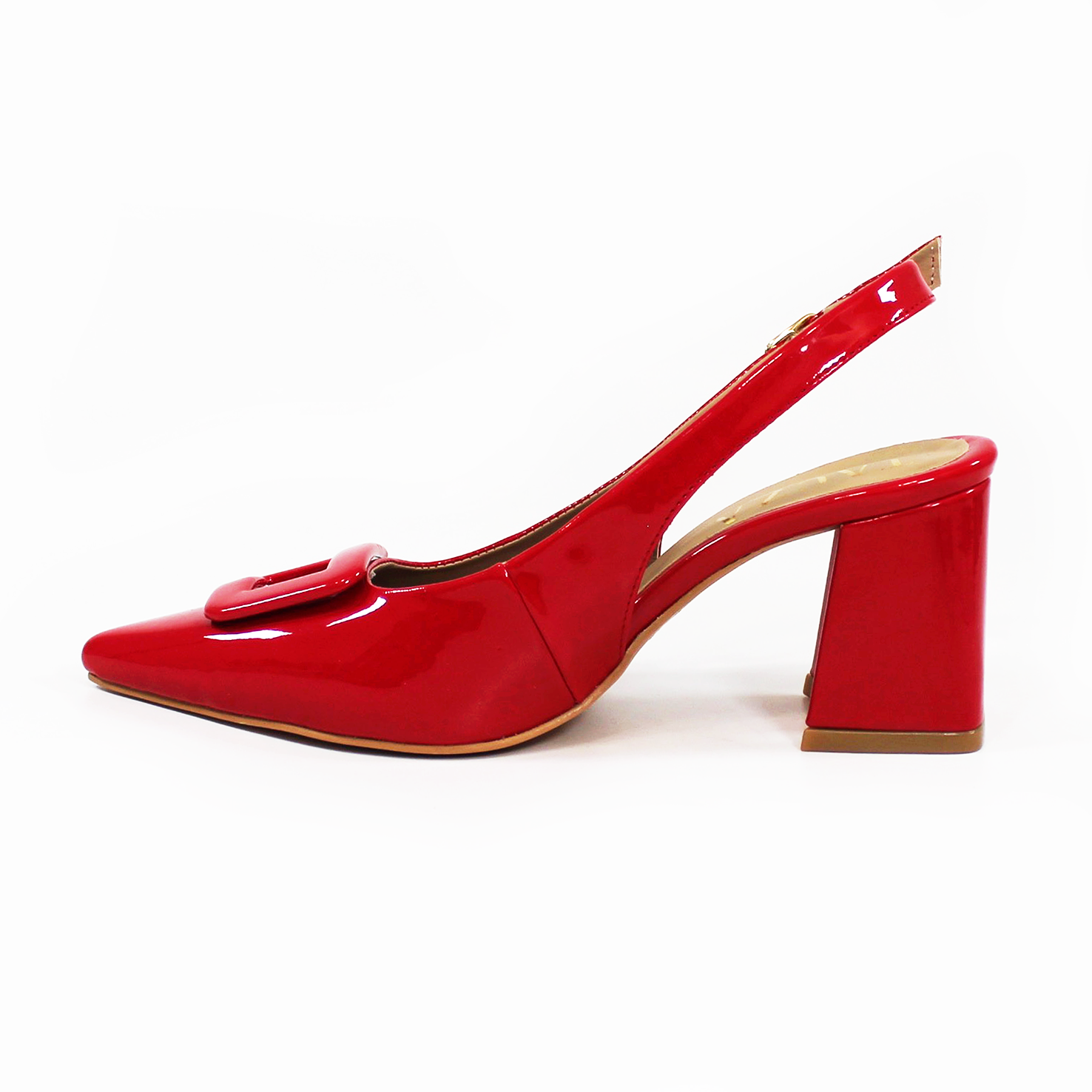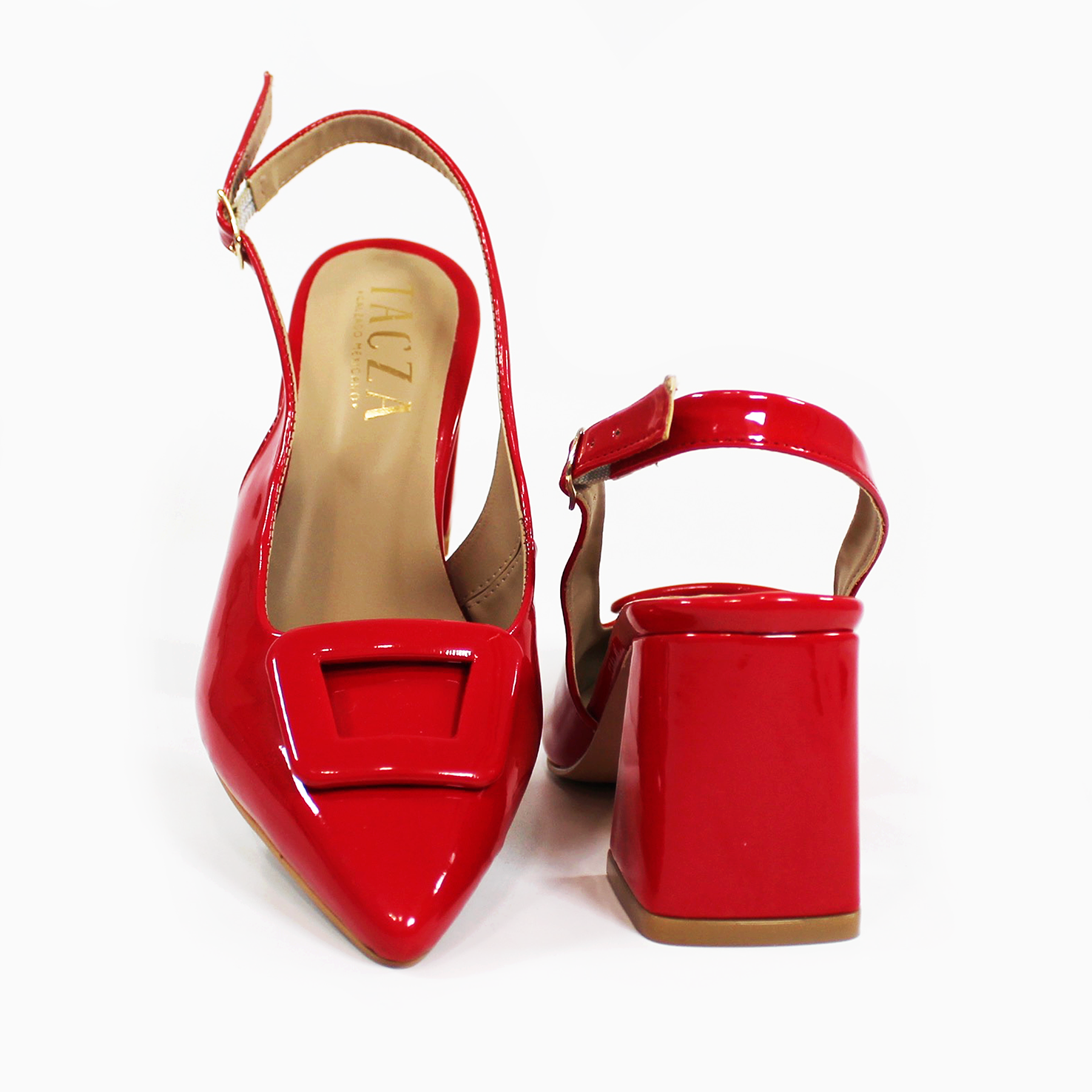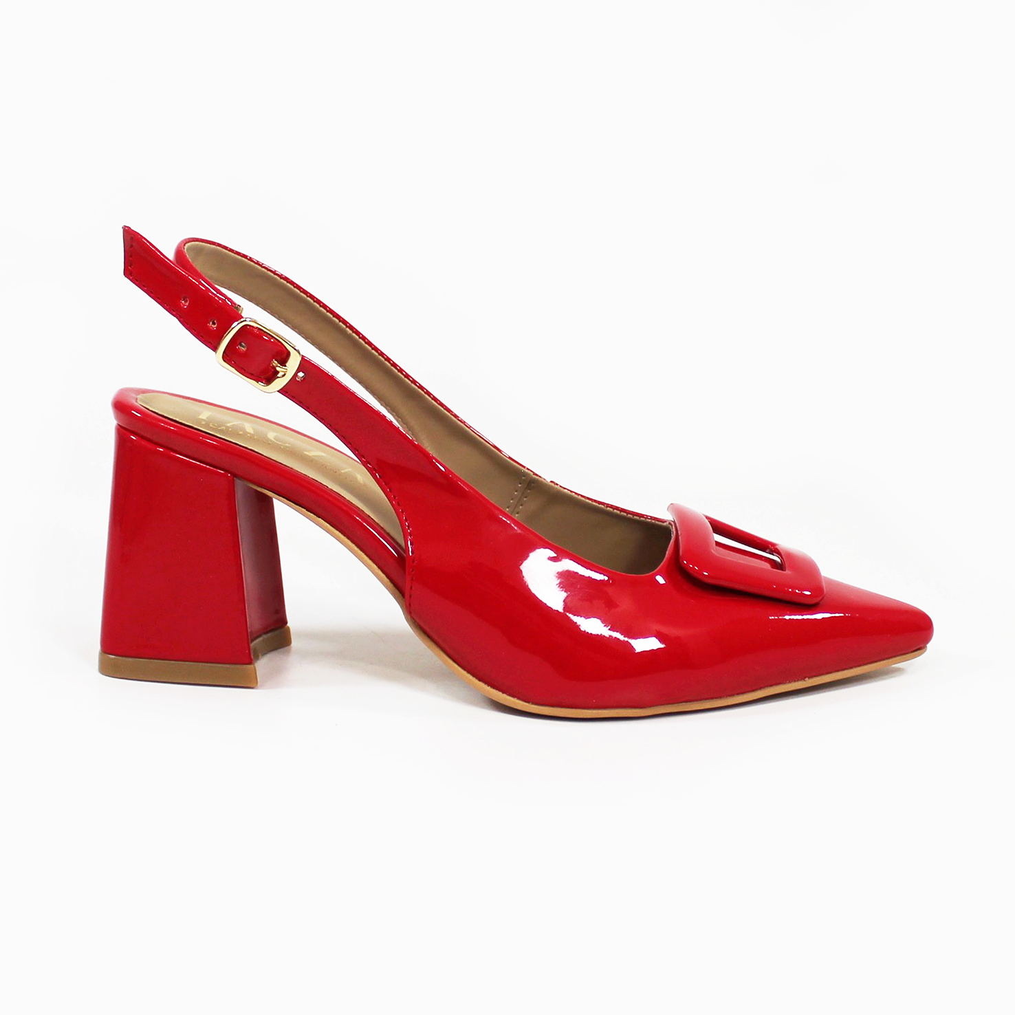 Zapatilla Puntal Destalonada con Botón Cuadrado Rojo Charol TACZA