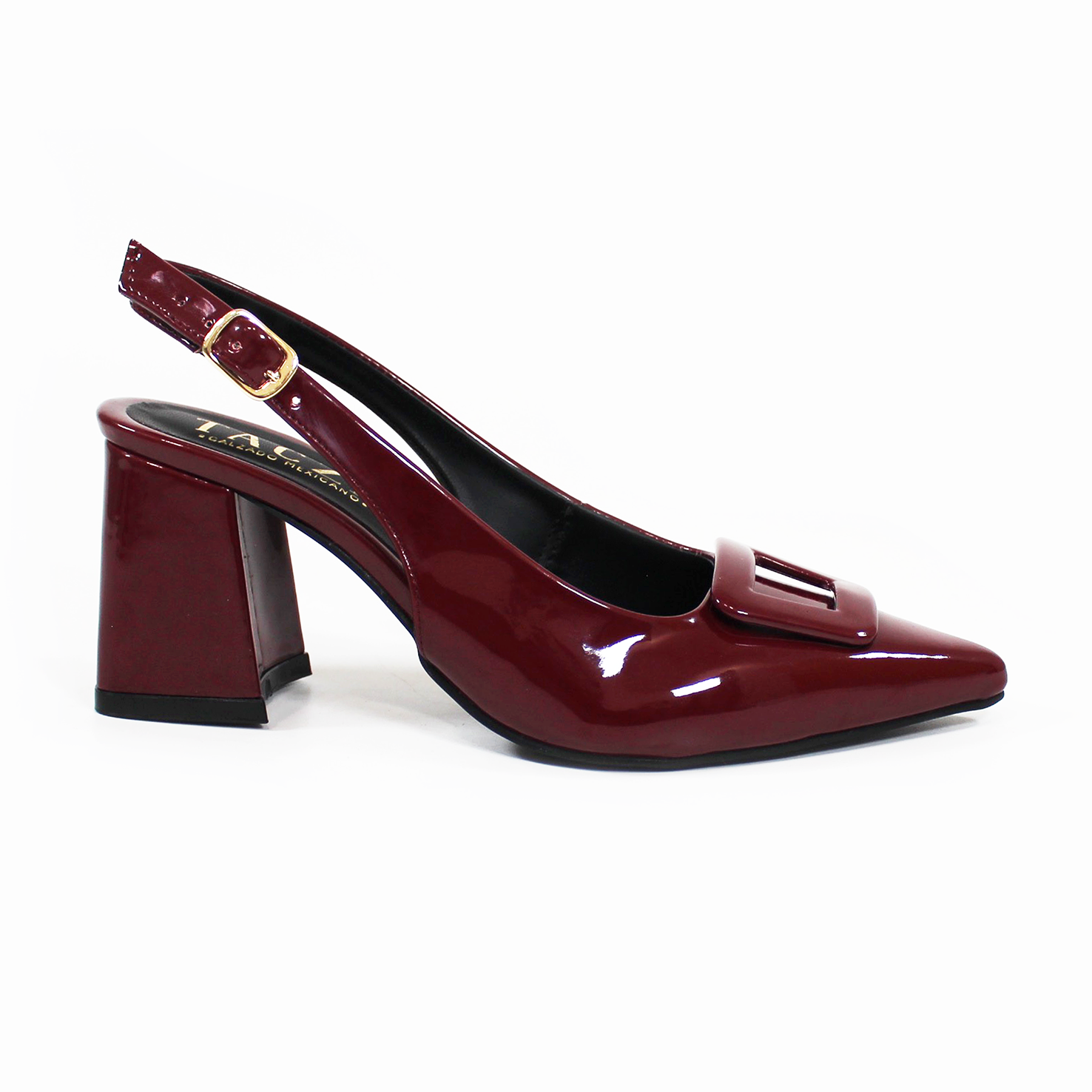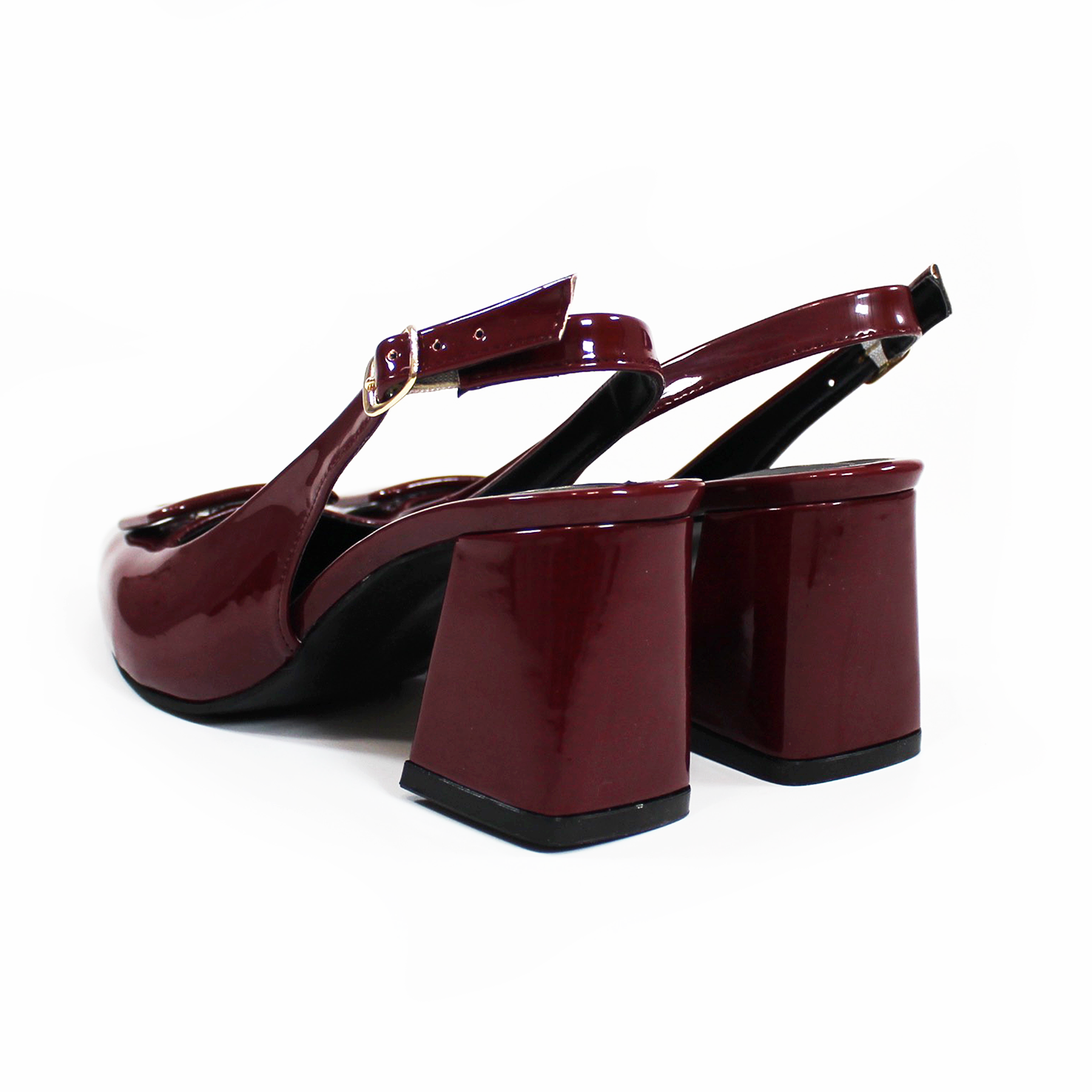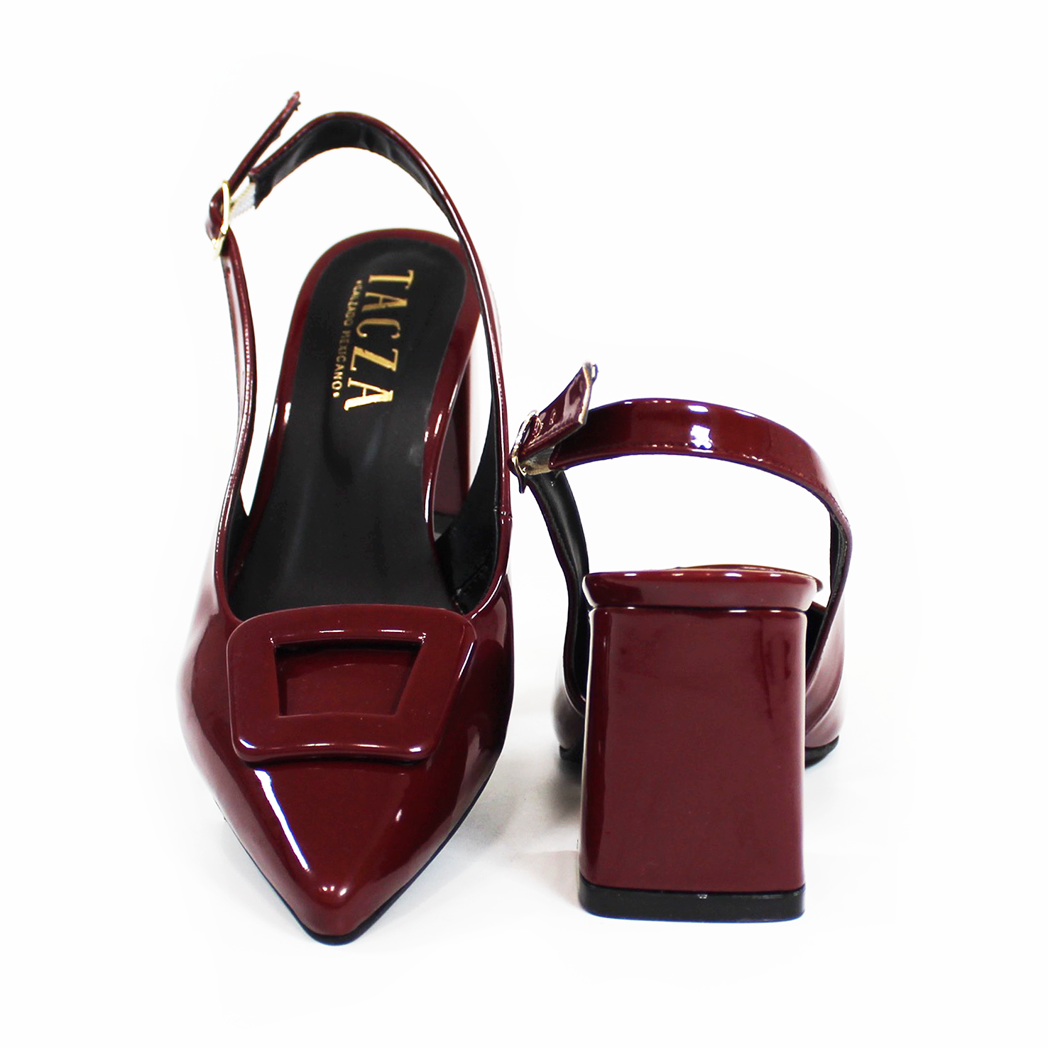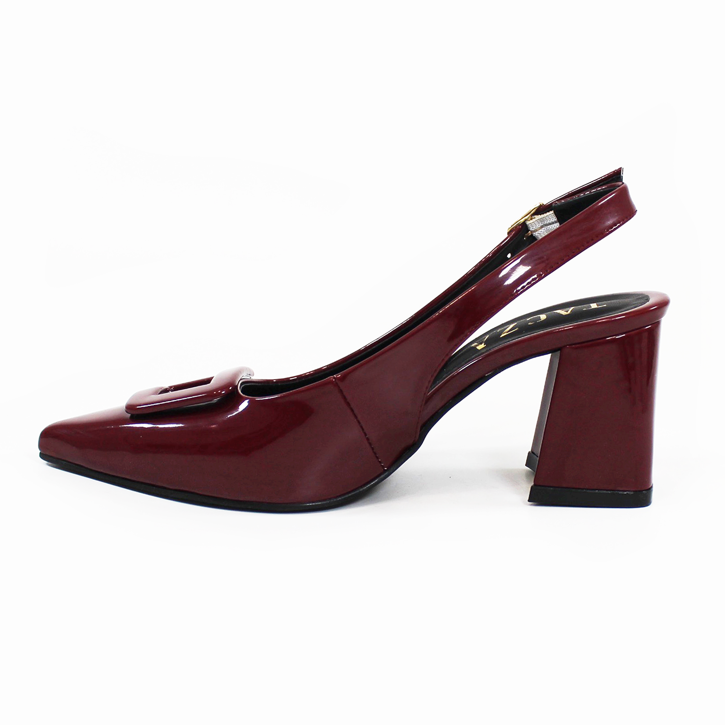 Zapatilla Puntal Destalonada con Botón Cuadrado Vino Charol TACZA