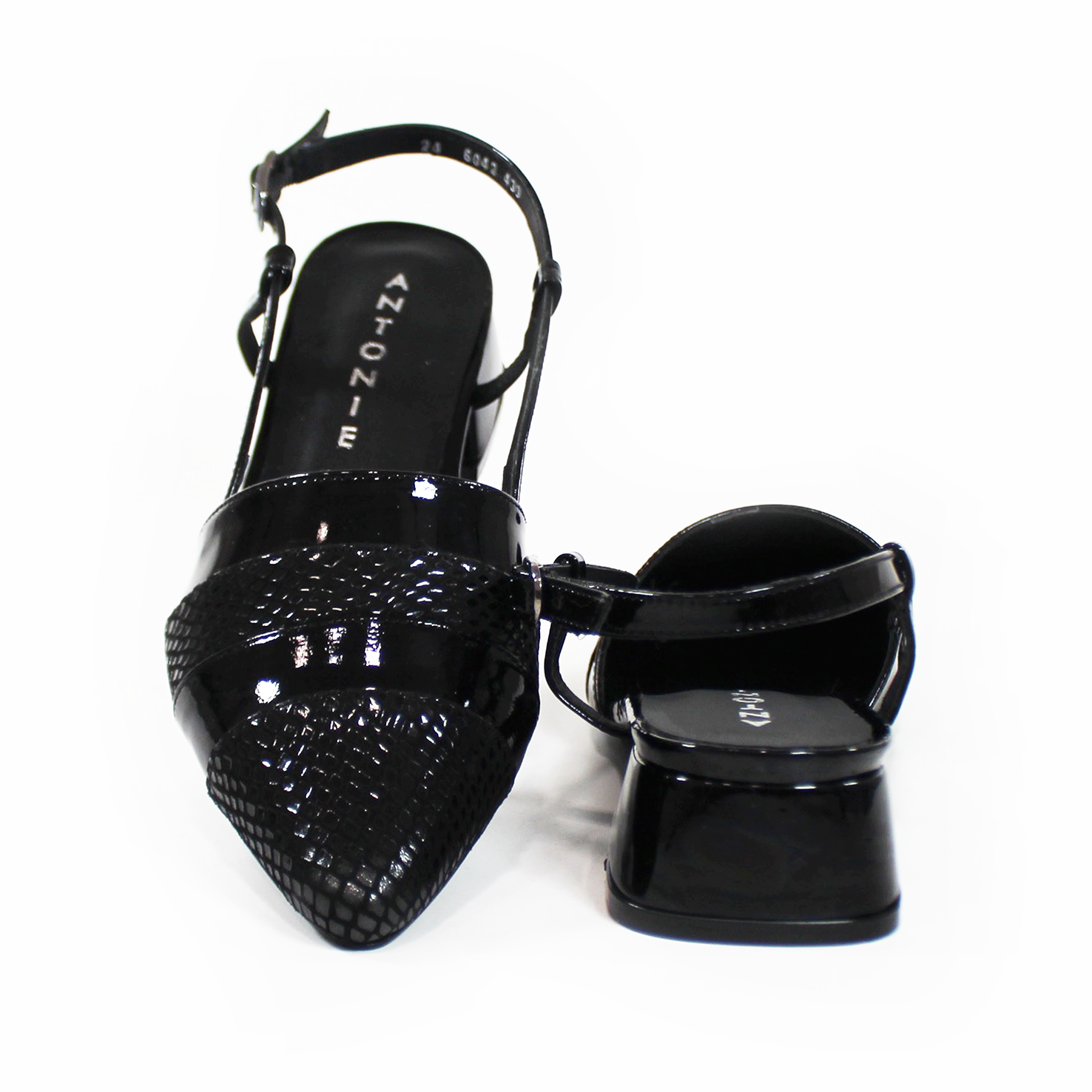 Zapatilla Puntal Slingback de Piel Negro Charol con Croco de Dama ANTONIE
