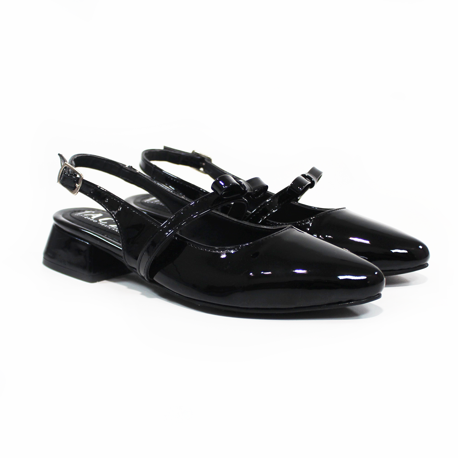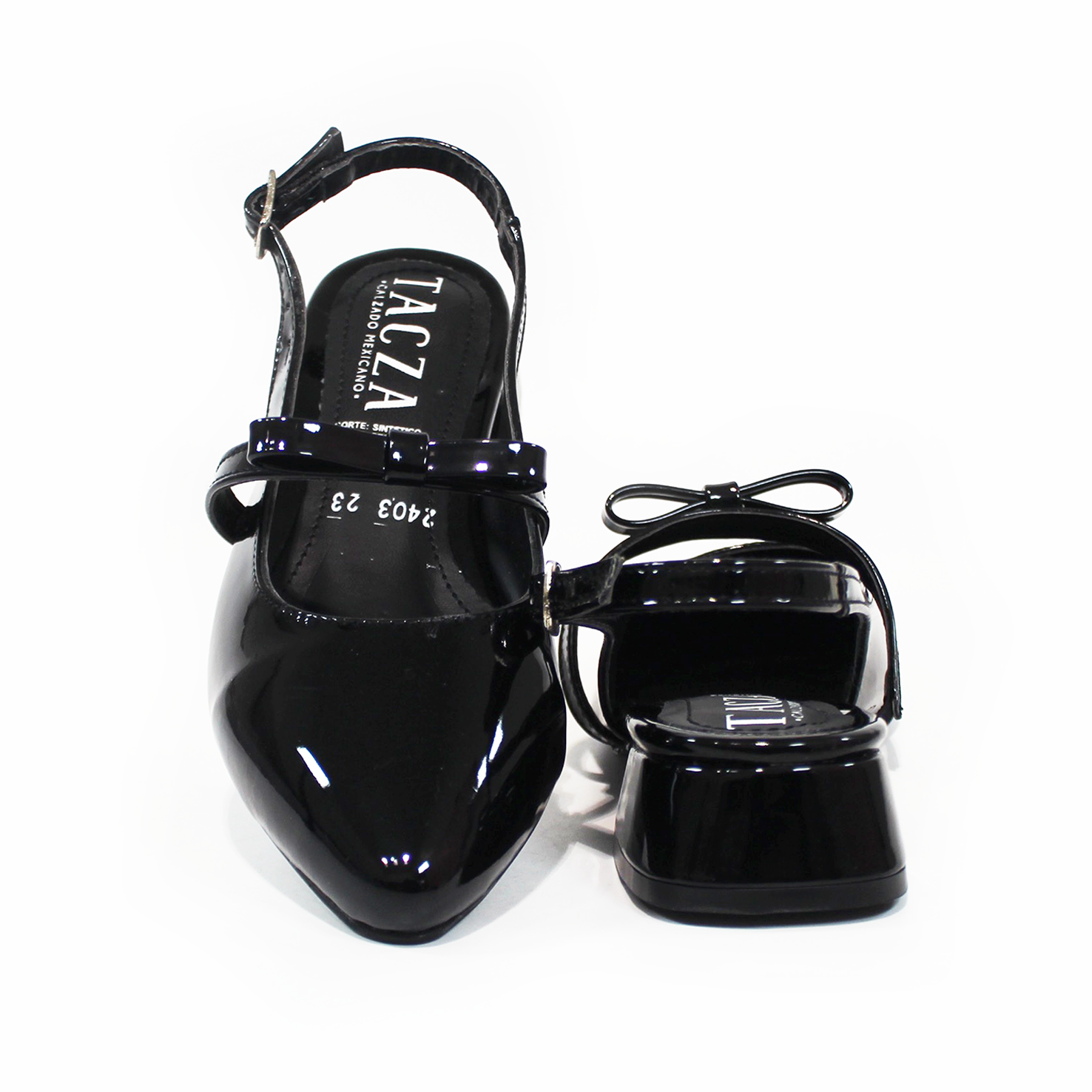 Zapatilla Slingback Destalonada Negro Charol con Moño TACZA