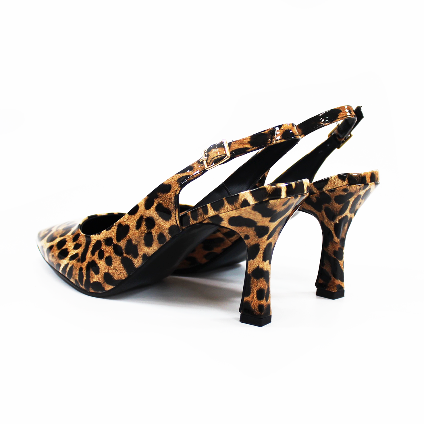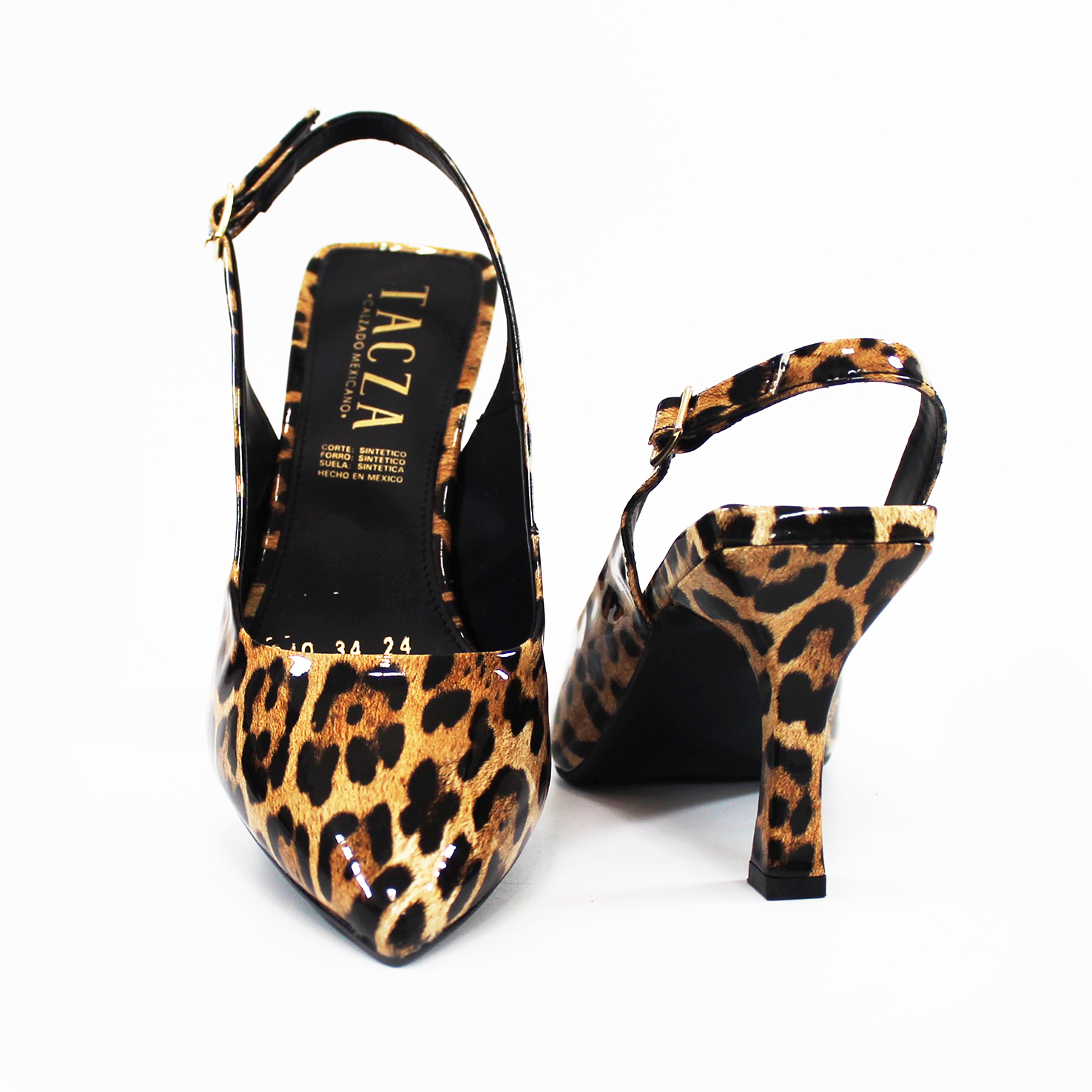 Zapatilla Slingback Puntal con tacón campana Destalonada Animal Print Charol de Dama TACZA