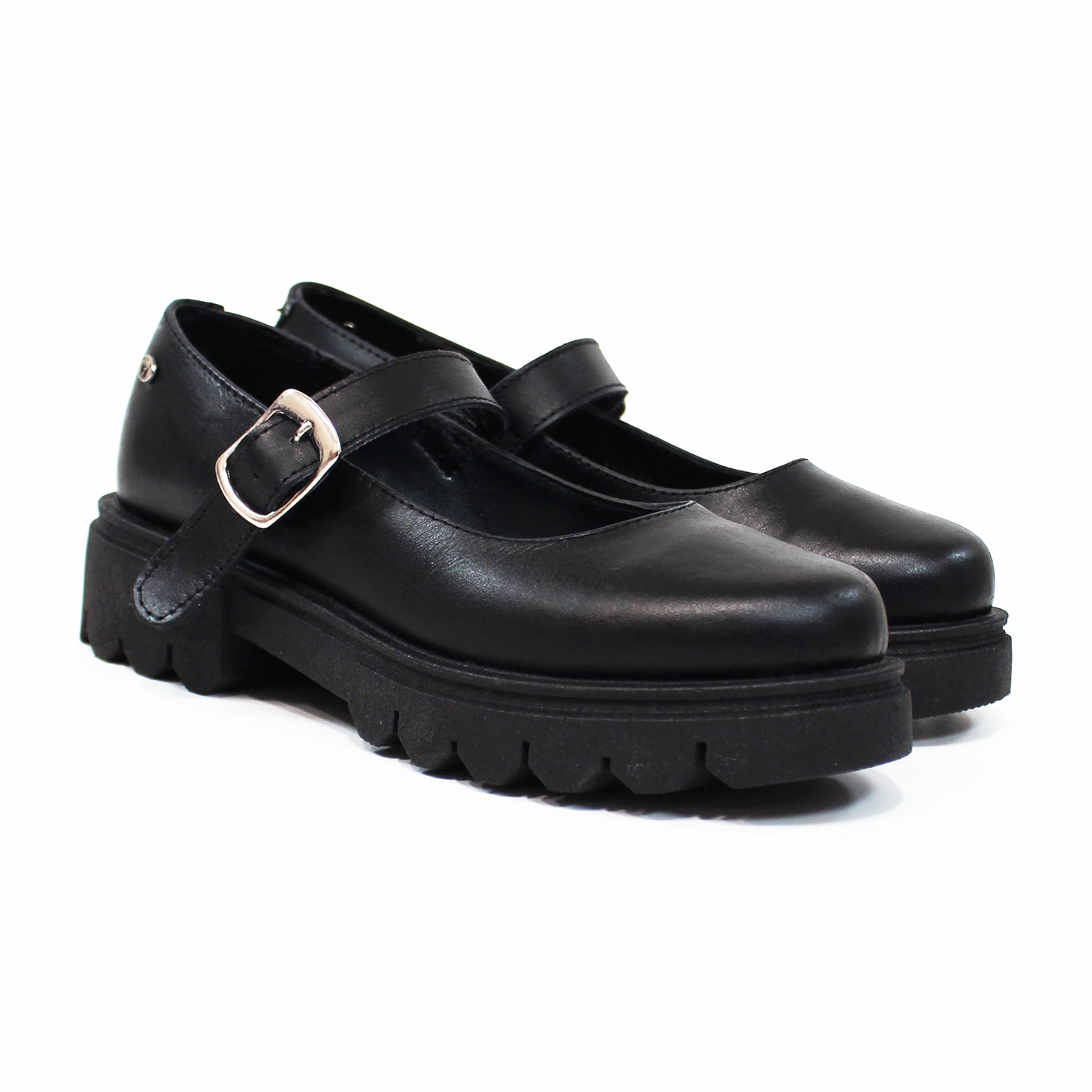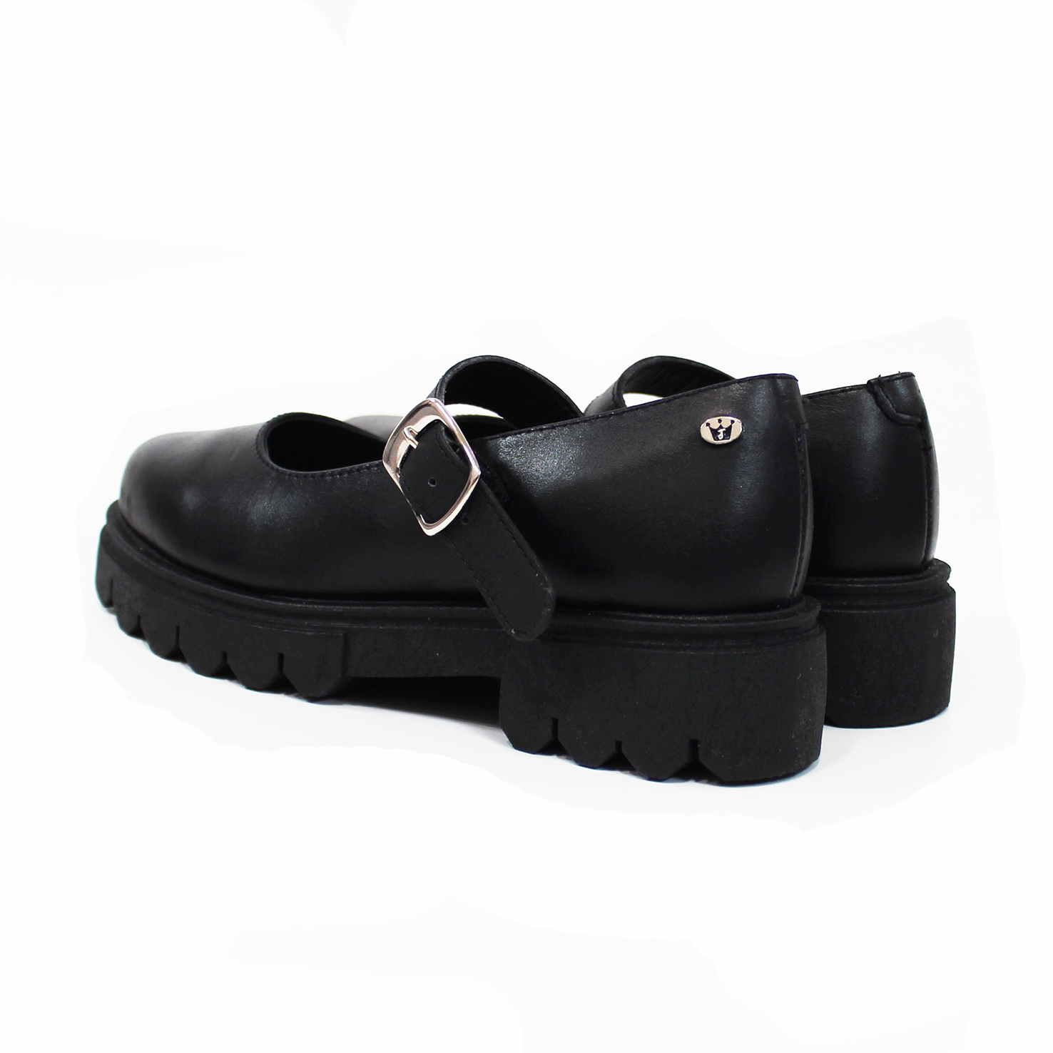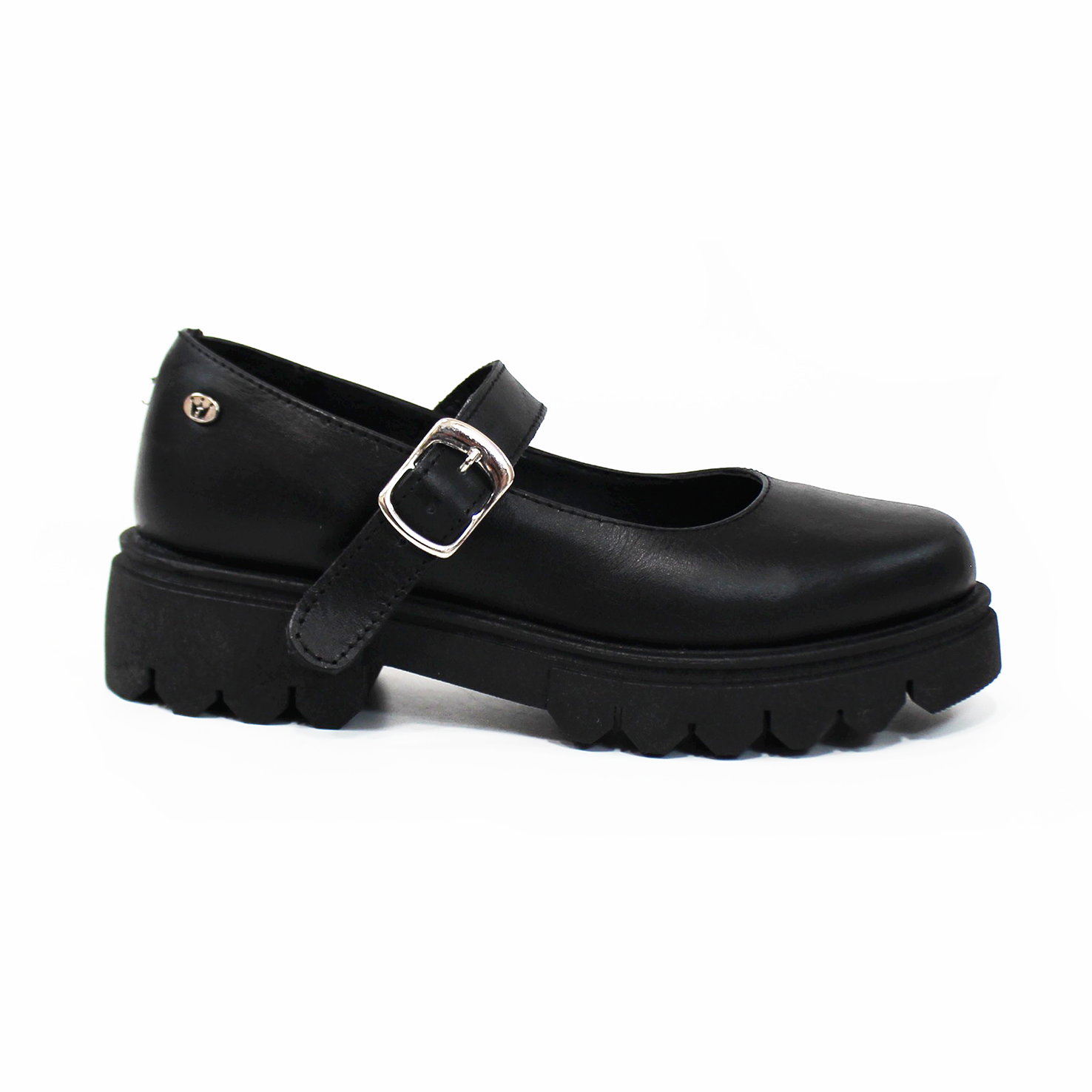 Zapato Escolar de Piel Chunky de Niña con Hebilla Negro JAKUNA
