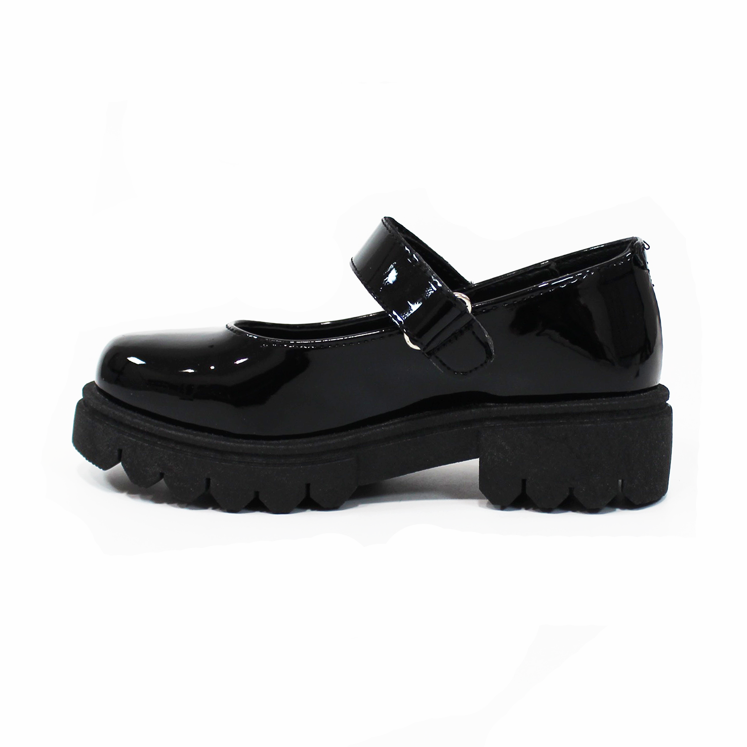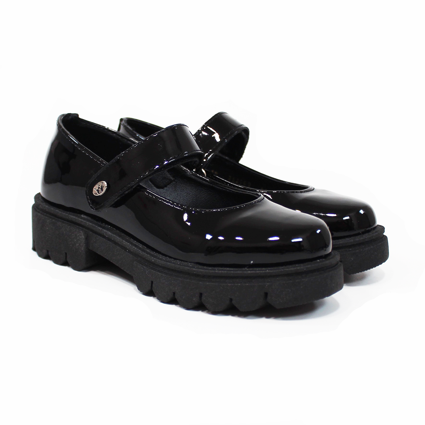 Zapato Escolar con Velcro Negro Charol de Niña JAKUNA